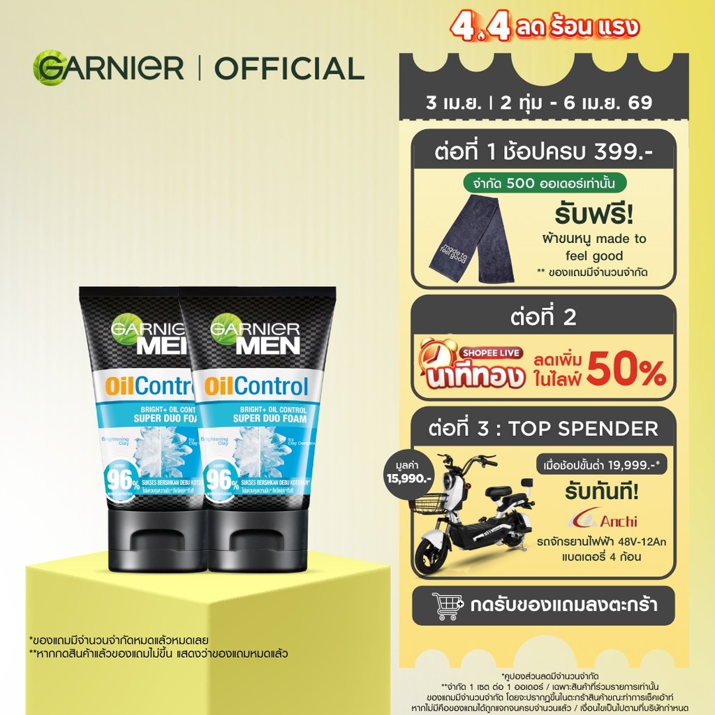 การ์นิเย่ เมน ออยล์ คอนโทรล ไอซี่ ดูโอ โฟม 100 มล. 2 ชิ้น GARNIER MEN OIL CONTROL ICY DUO FOAM 100 ml. 2 Pcs (โฟมผู้ชาย,