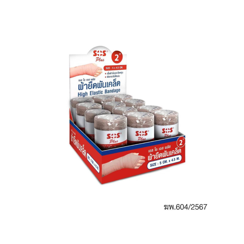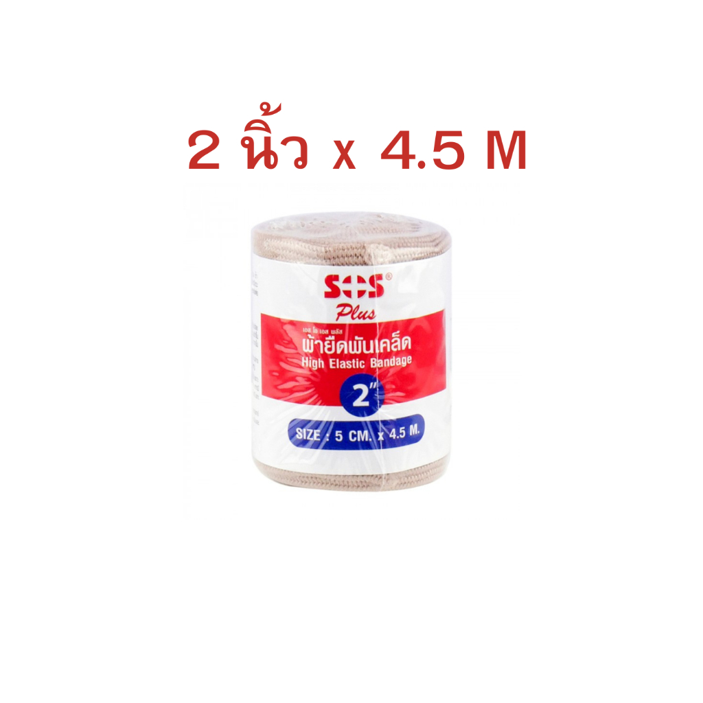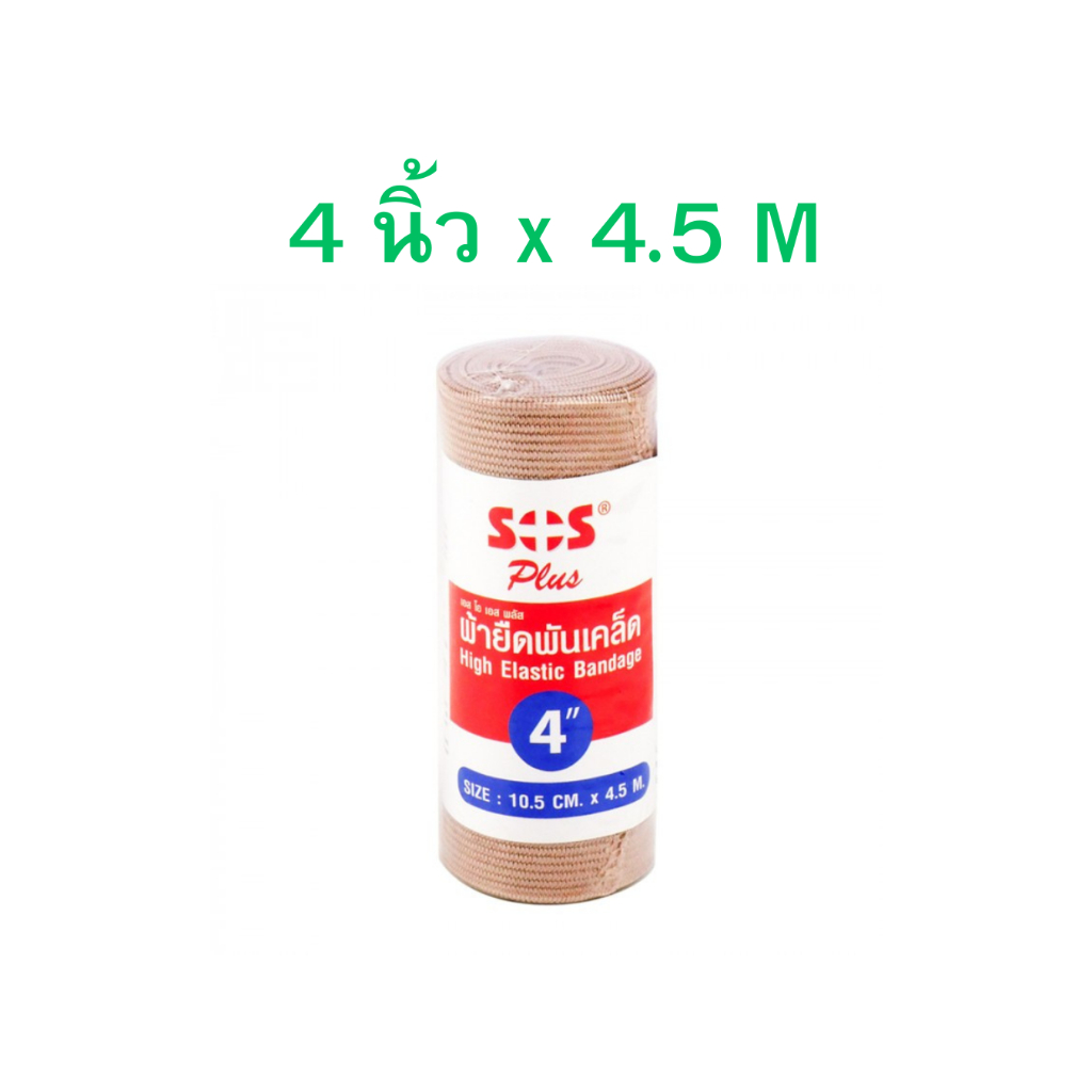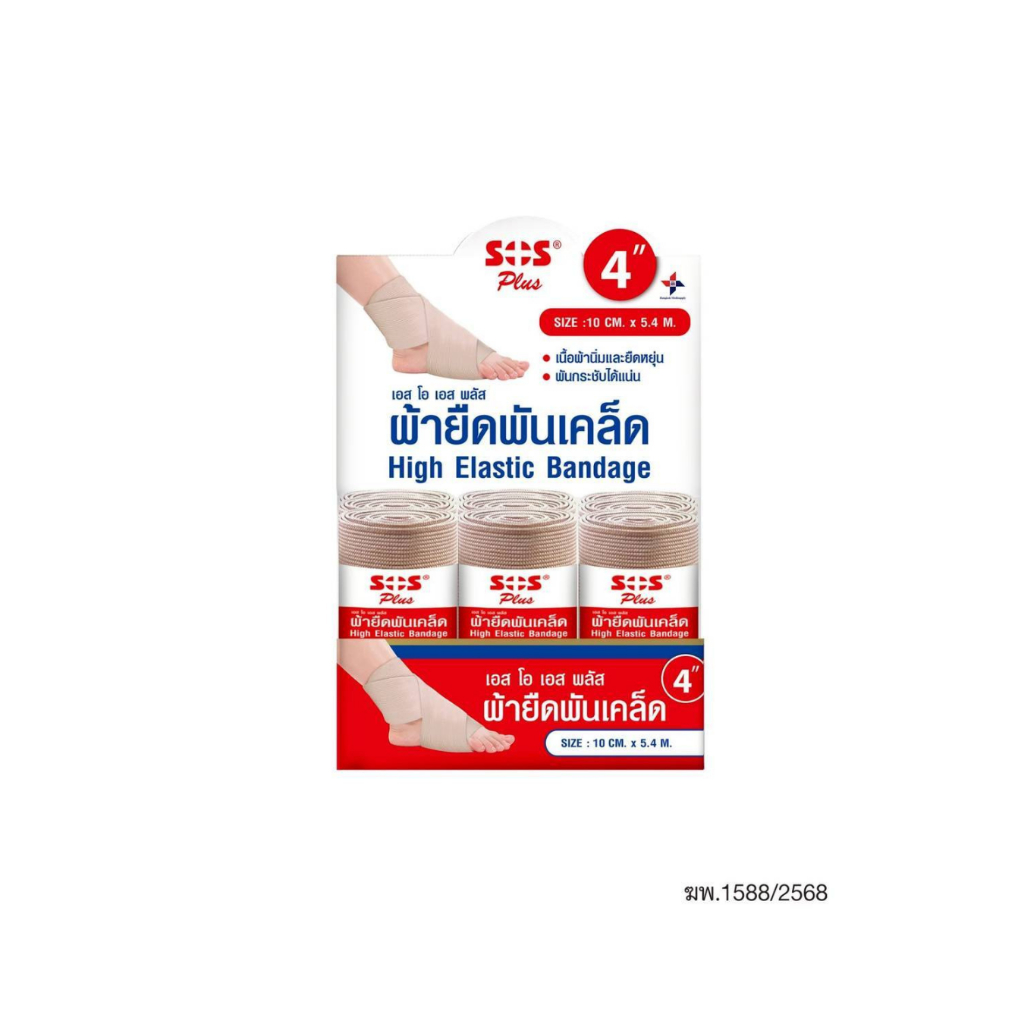 SOS Plus ผ้ายืดพันเคล็ด มีตะขอเกี่ยว แบบม้วน มี 3 ขนาด 2, 3, 4 นิ้ว (1ม้วน)