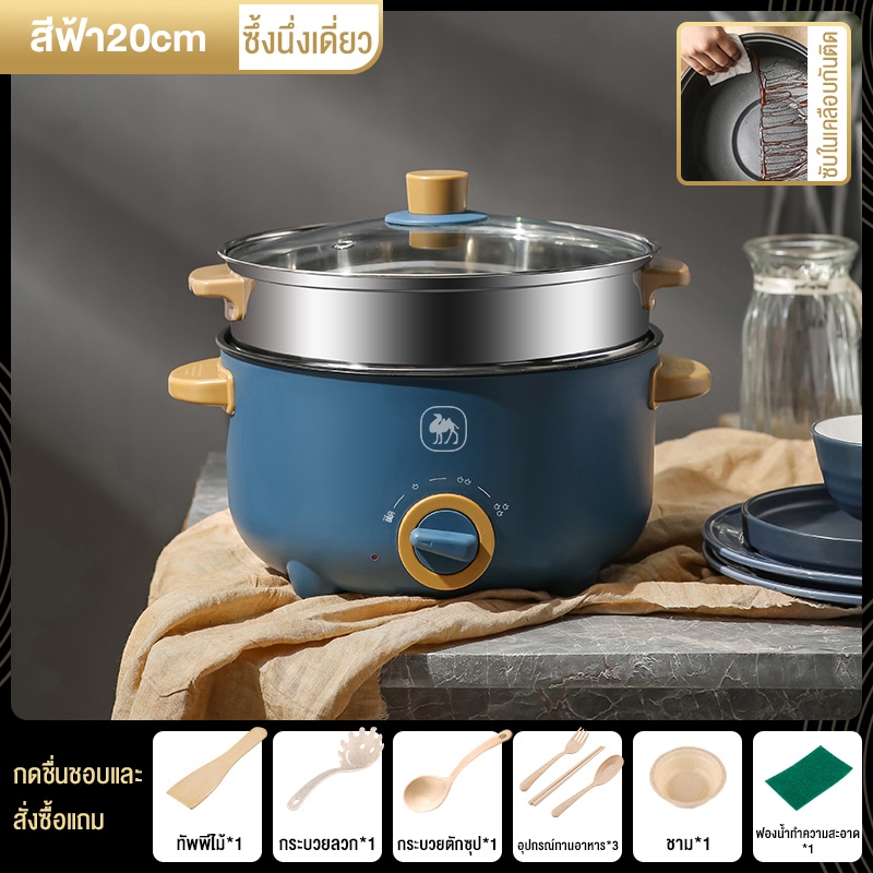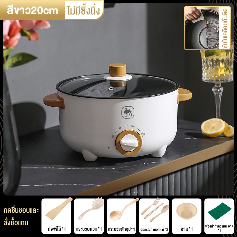 CAMEL หม้อไฟฟ้า หม้อไฟฟ้ามินิ หม้อไฟฟ้าอเนกประสงค์ 1000W ไม่ติดกระทะ ตัดไฟอัตโนมัติ