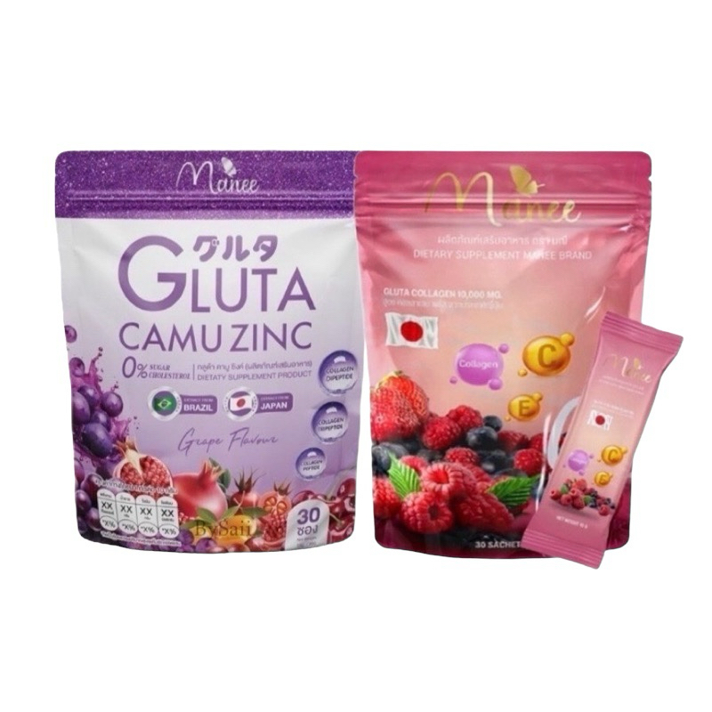 แท้💯% กลูต้ามณี กลูต้าคอลลาเจนมดซี่ กลูต้ามณี 1 ห่อ 30 ซอง กลูต้าคอลลาเจน(ชมพู💖) กลูต้าคามูซิงค์ (ม่วง💜)