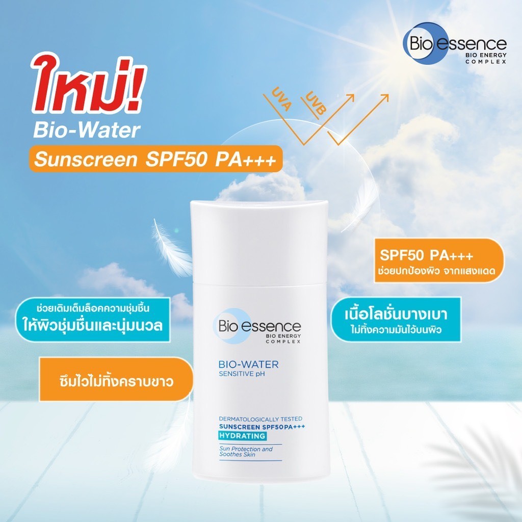 พร้อมส่ง Bio Essence Bio Water Sunscreen SPF50 ขนาด 40ml.กันแดดสำหรับคนผิวแห้ง ผิวแพ้ง่าย