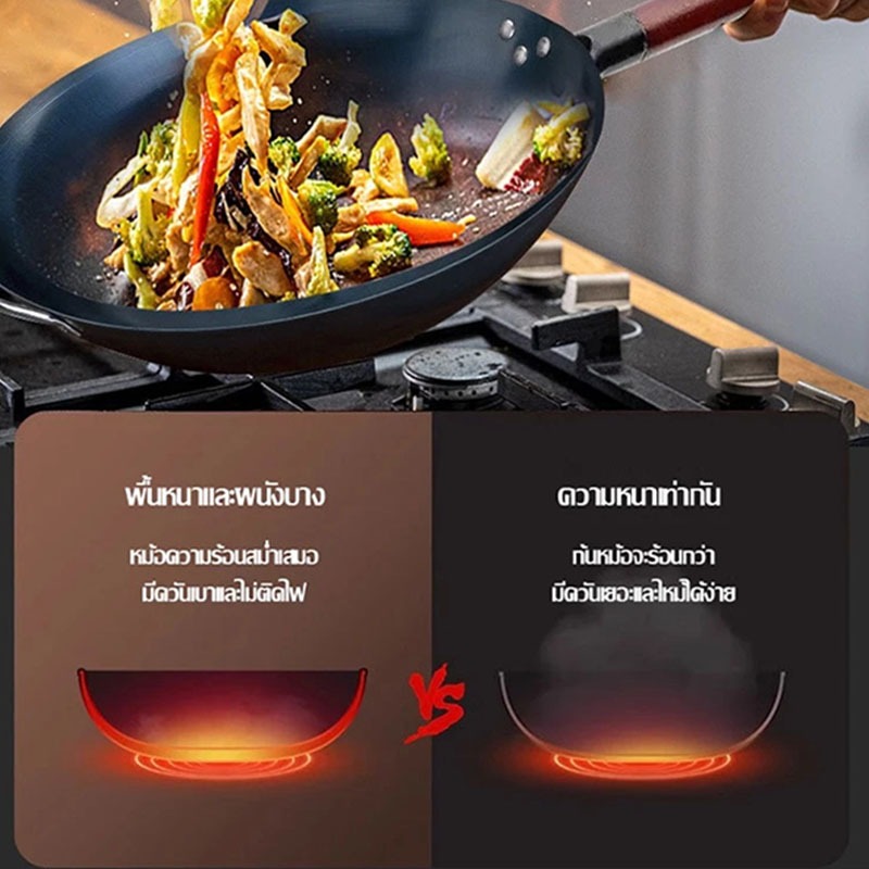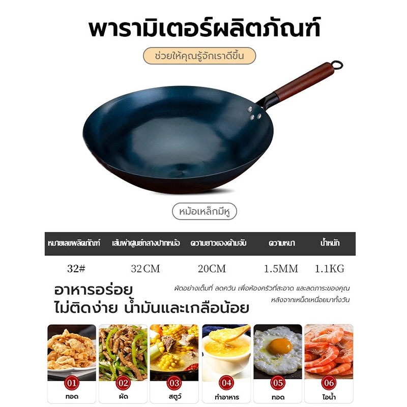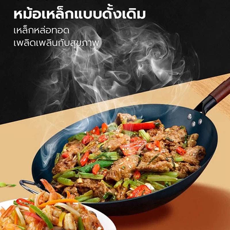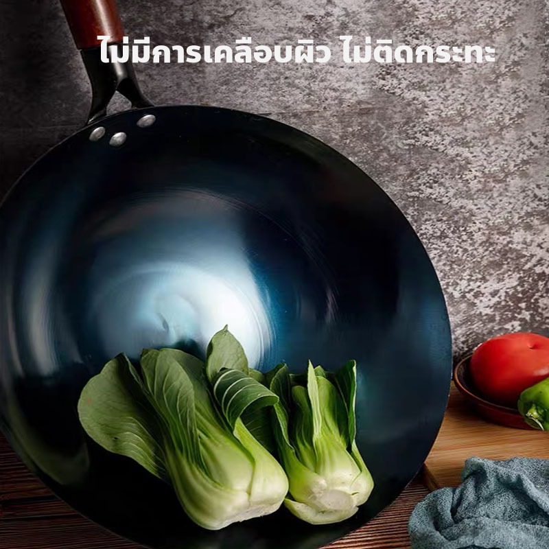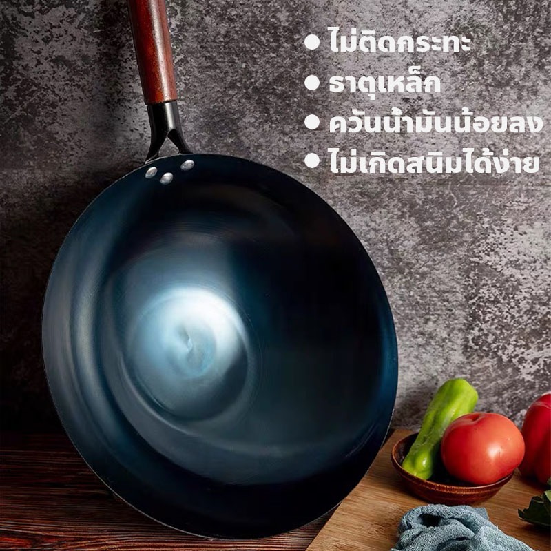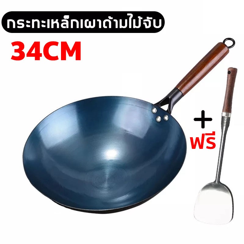 พร้อมส่ง กระทะเหล็กเผา แถมตะหลิวสตนเลส กระทะเหล็ก กะทะเหล็กเผาไฟ ไม่เคลือบผิว เผาแล้วพร้อมใช้งาน