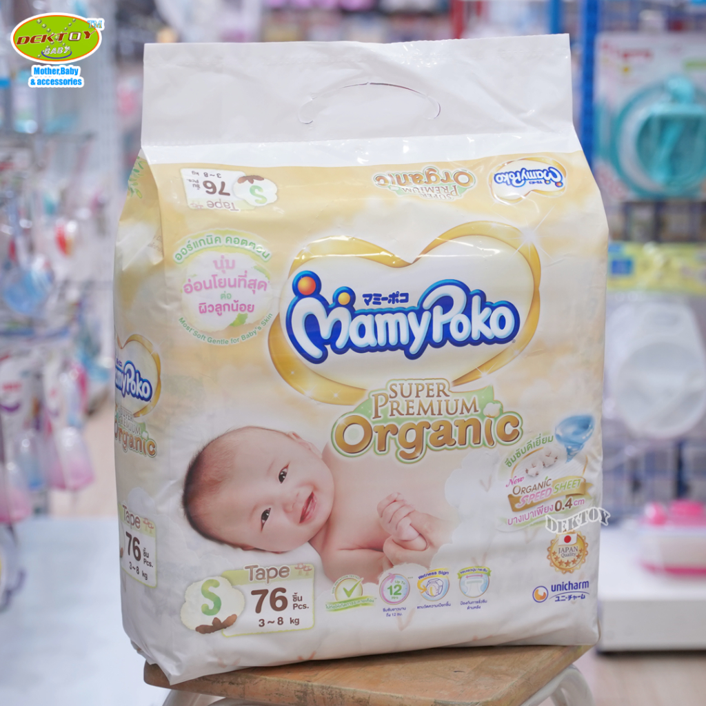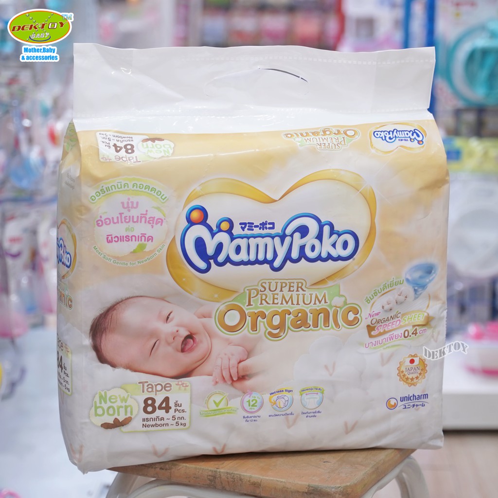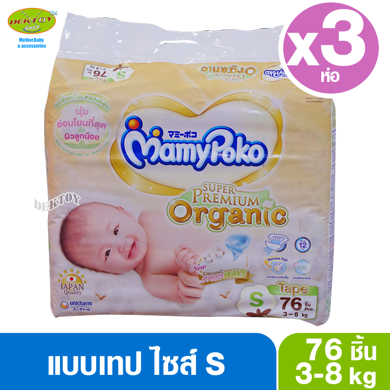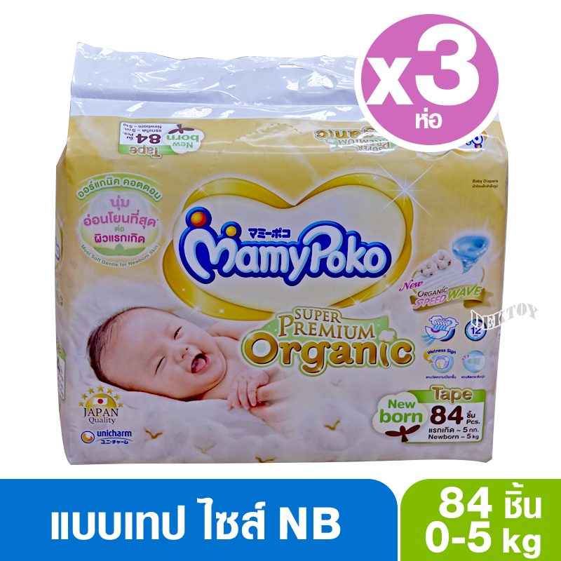 ยกลัง 3 ห่อ Mamypoko Super Premium organic มามี่โพโค ผ้าอ้อมสำเร็จรูปแบบเทป แรกเกิด NB84ชิ้น S76ชิ้น