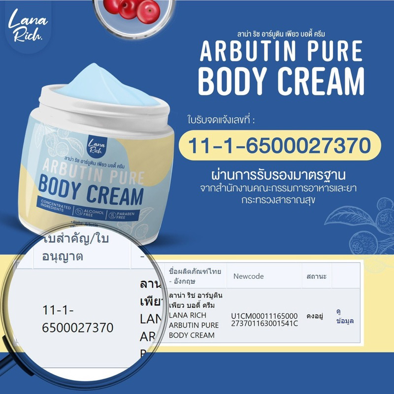 ลาน่า ริช อาร์บูติน เพียว บอดี้ ครีม 400 ml.