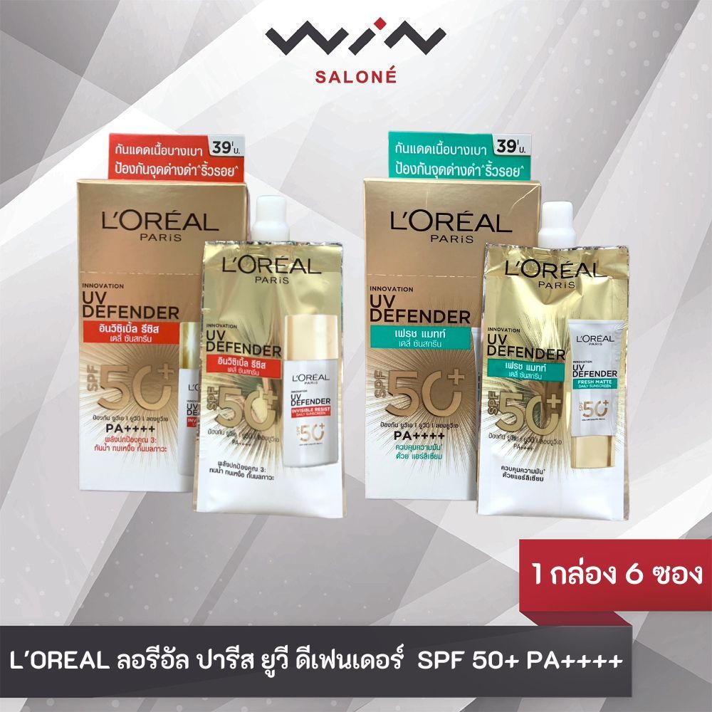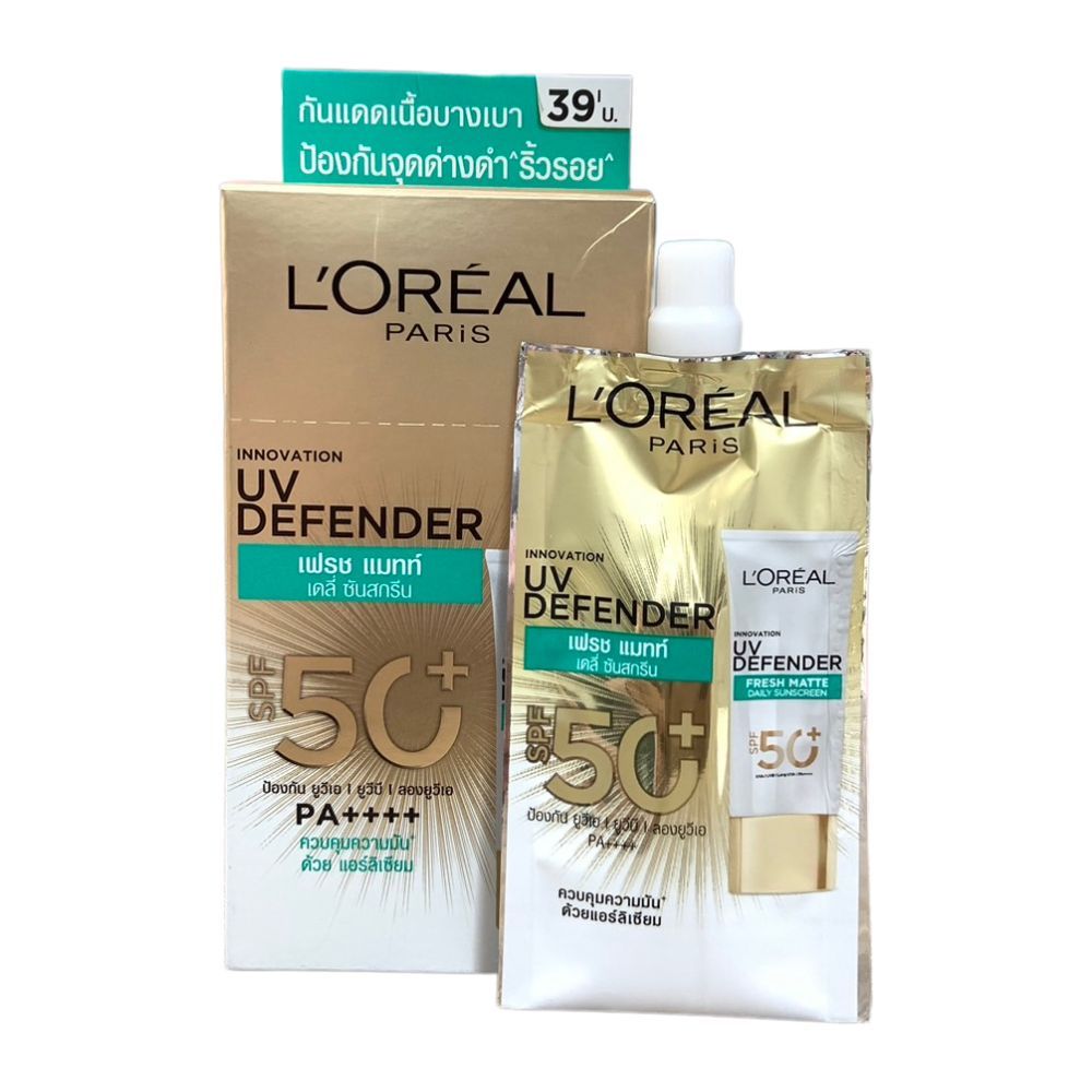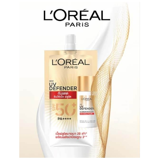 L'OREAL ลอรีอัล ปารีส ยูวี ดีเฟนเดอร์ UV Defender SPF 50+ PA++++ 5.5 ml. [ 1 กล่อง 6 ซอง ] เซรั่มกันแดด แบบซอง