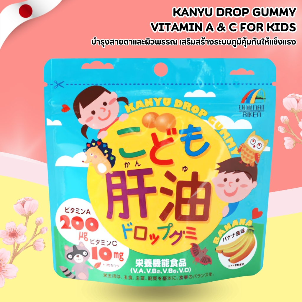 Kanyu Drop Gummy 🍊 วิตามิน A & C สำหรับเด็ก เสริมภูมิคุ้มกันและบำรุงสายตา (100 เม็ด) No.Jp247