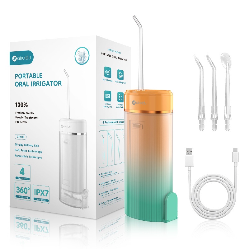 Preferred หมขัดฟันพลังน้ำ ปกรณ์ทำความสะอาดฟันกันน้ำ IPX7 ไหมขัดฟัน กันน้ำแบบพกพา 4 หัวฉีด ทําความสะอาดฟัน CF500