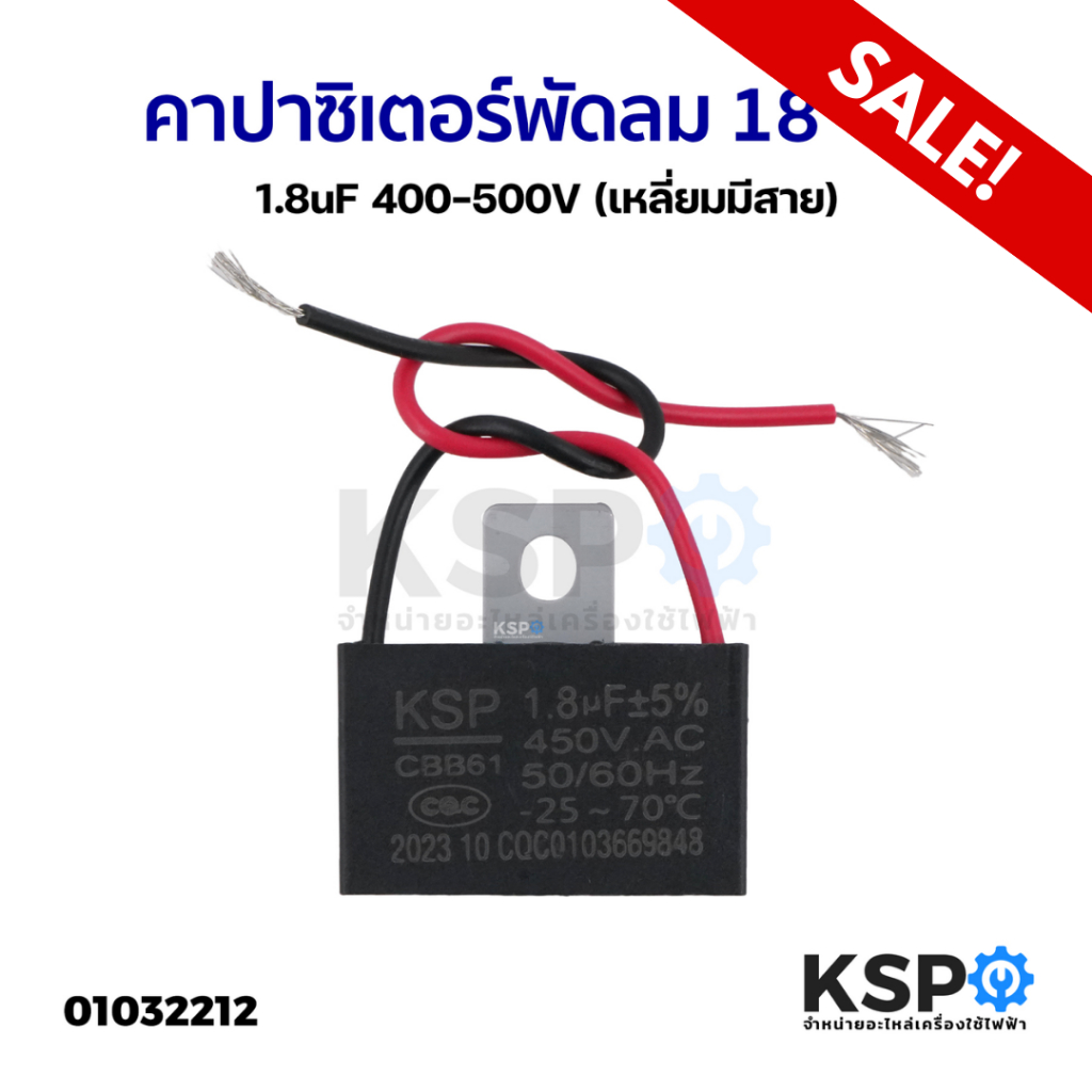 คาปาซิเตอร์ พัดลมทั่วไป 18" นิ้ว 1.8uF 400-500V (เหลี่ยมมีสาย) อะไหล่พัดลม