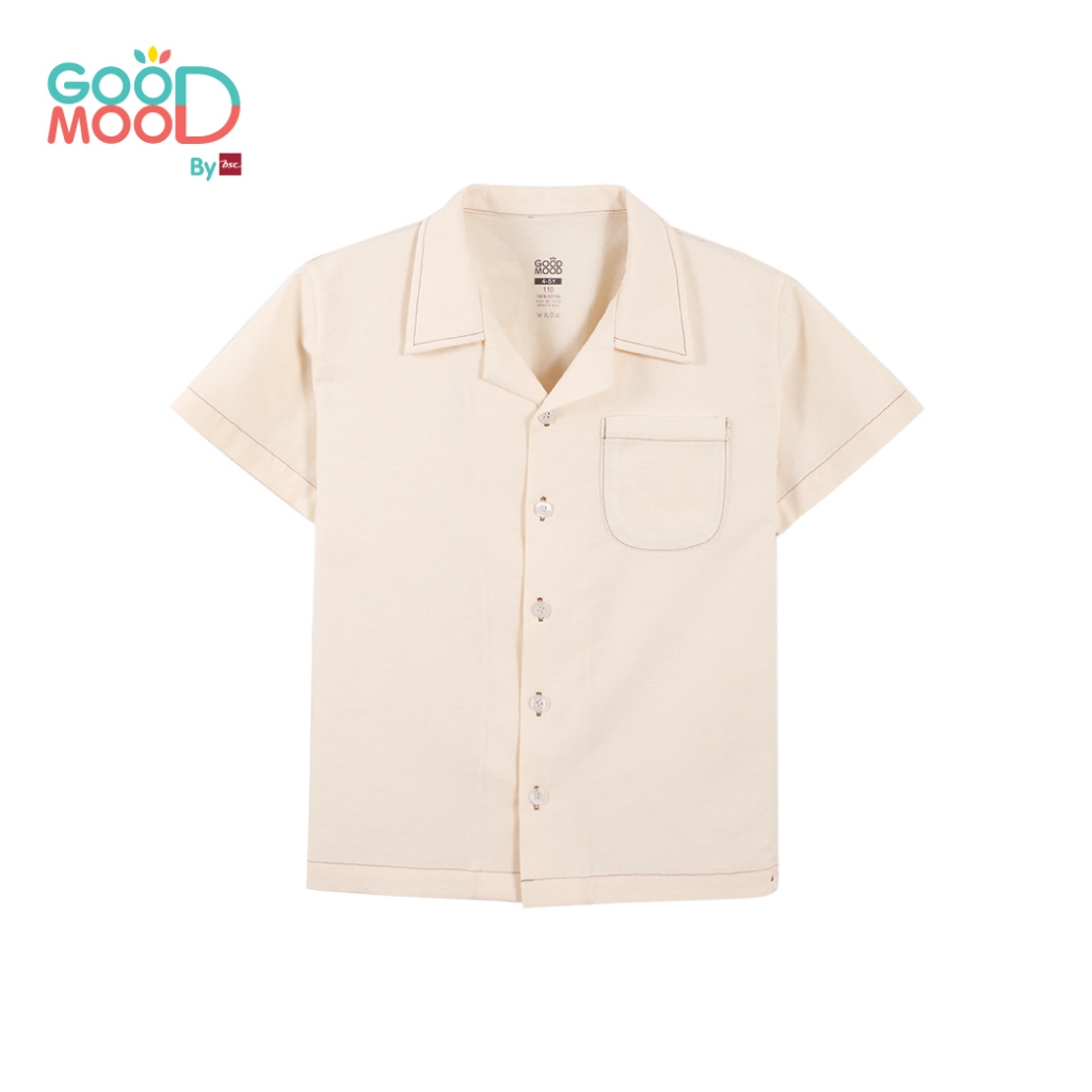 Good Mood by bsc เสื้อฮาวาย สีครีม สำหรับเด็กอายุ 8-9 ปี ผ้า Oxford