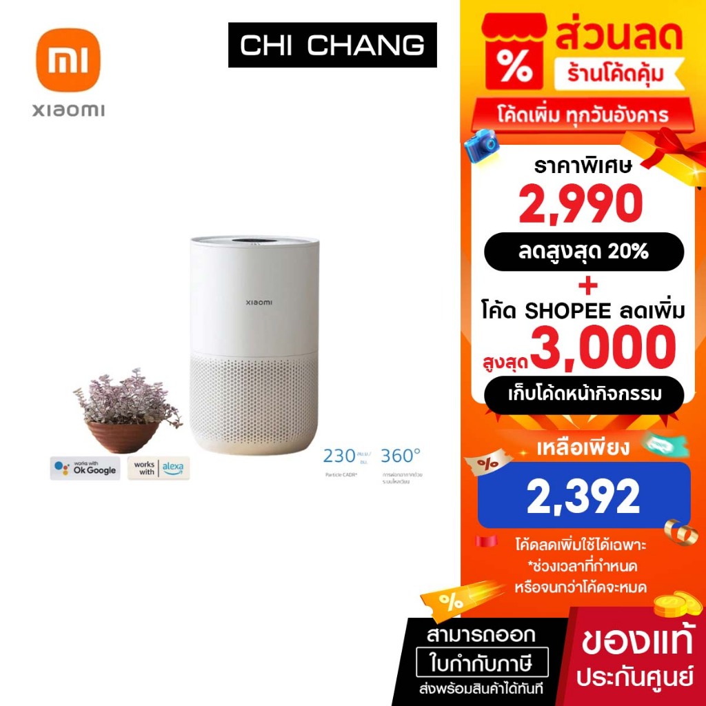 Xiaomi Smart Air Purifier 4 Compact เครื่องฟอกอากาศอัจฉริยะ 4 230 ลบ.ม./ชม. 16-27 ตร.ม.ดักจับฝุ่น PM 2.5, ละอองเกสร