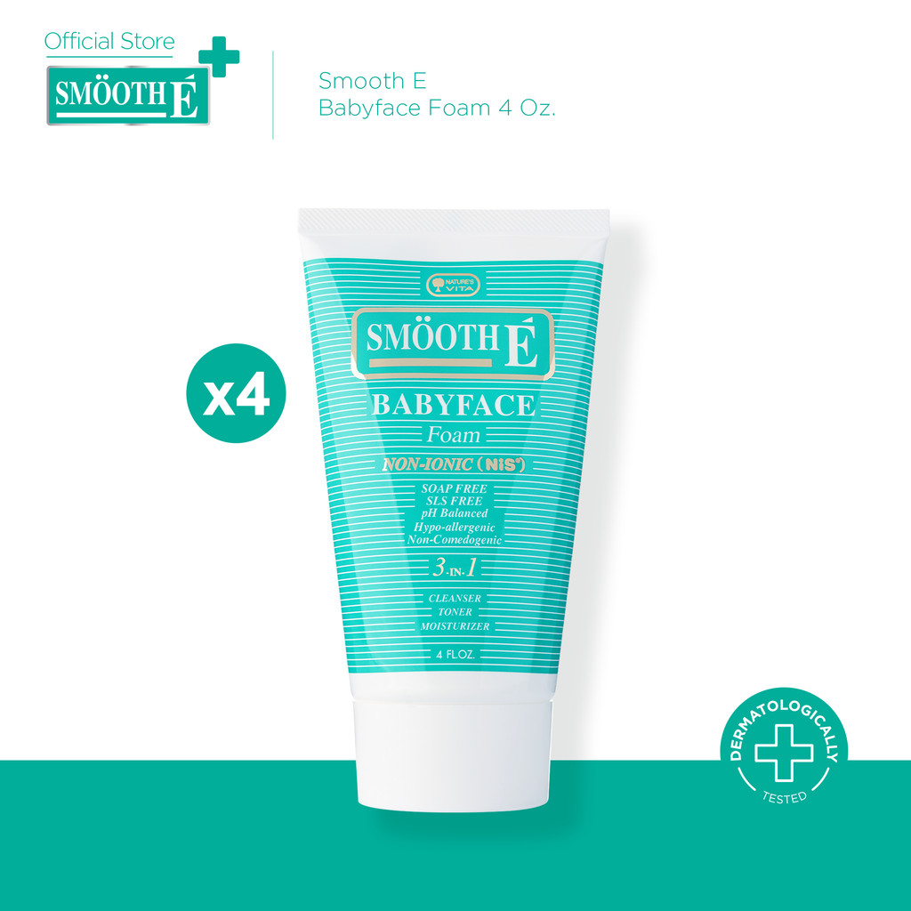 [แพ็ค4สุดคุ้ม] Smooth E Babyface Foam 4 Oz. สมูทอี เบบี้เฟส โฟม pH5 ลดสิวผิวแข็งแรง สำหรับคนผิวมัน เป็นสิว