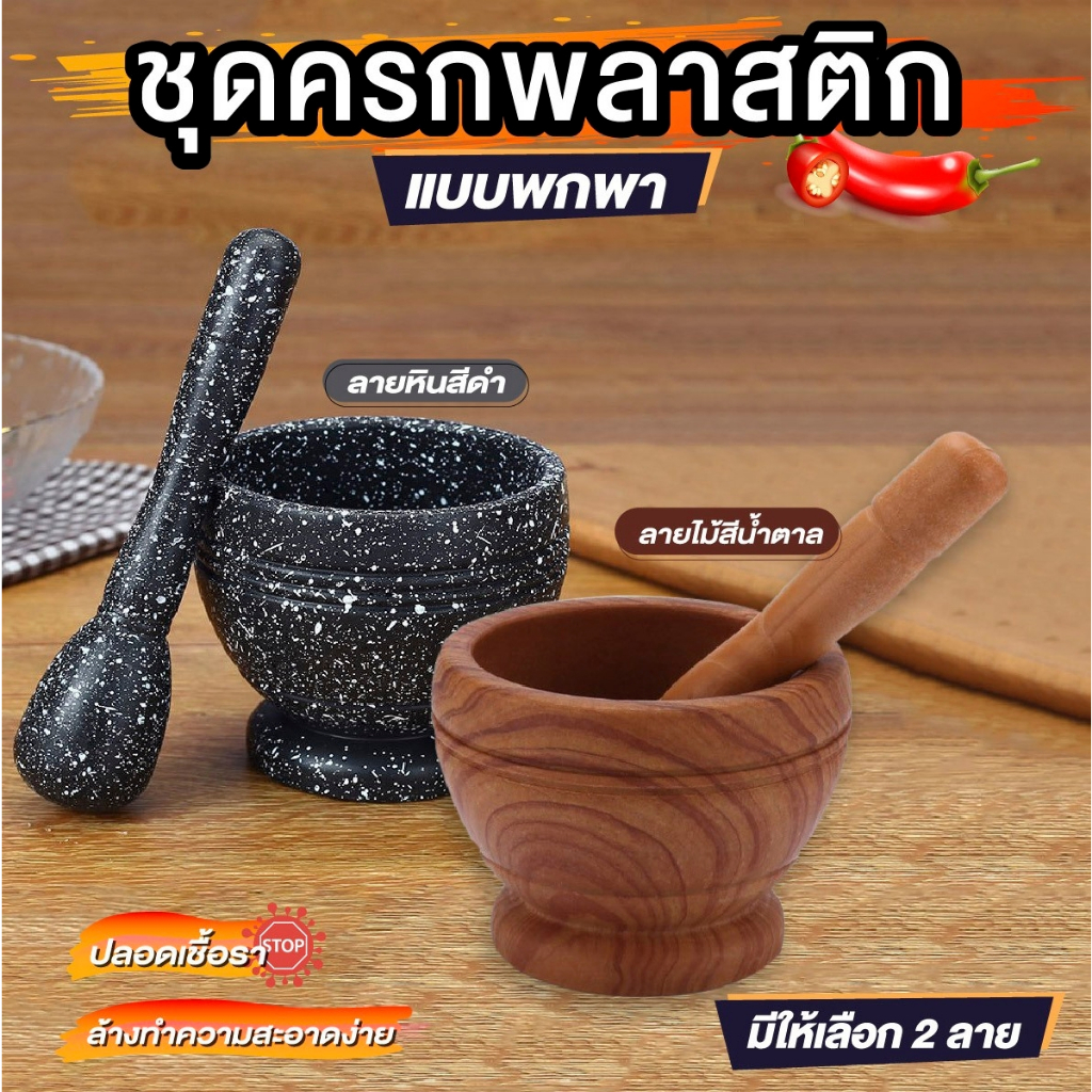 ครกพลาสติกแบบพกพา ครกเด็ก ลายหิน/ลายไม้