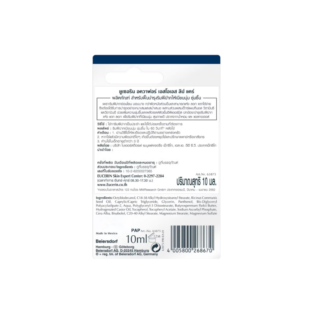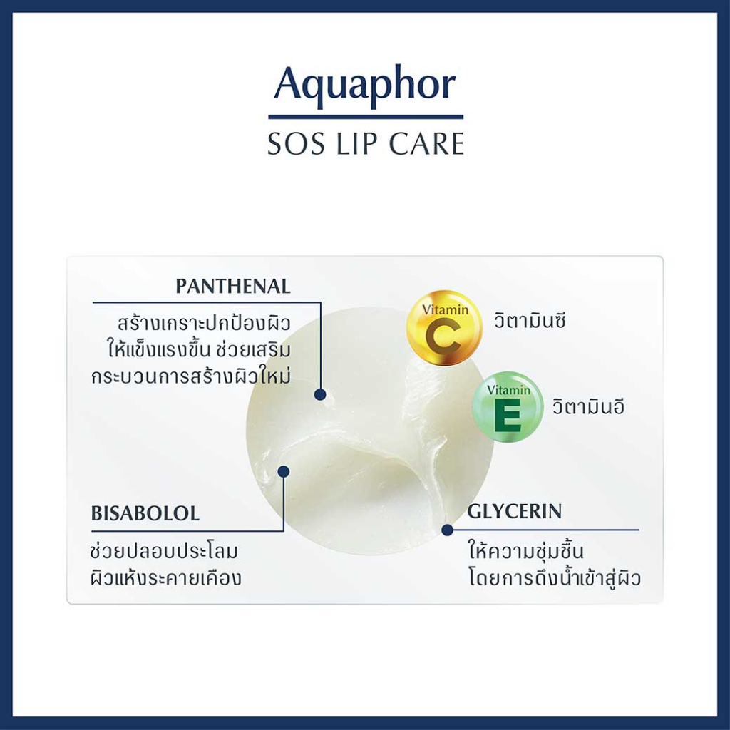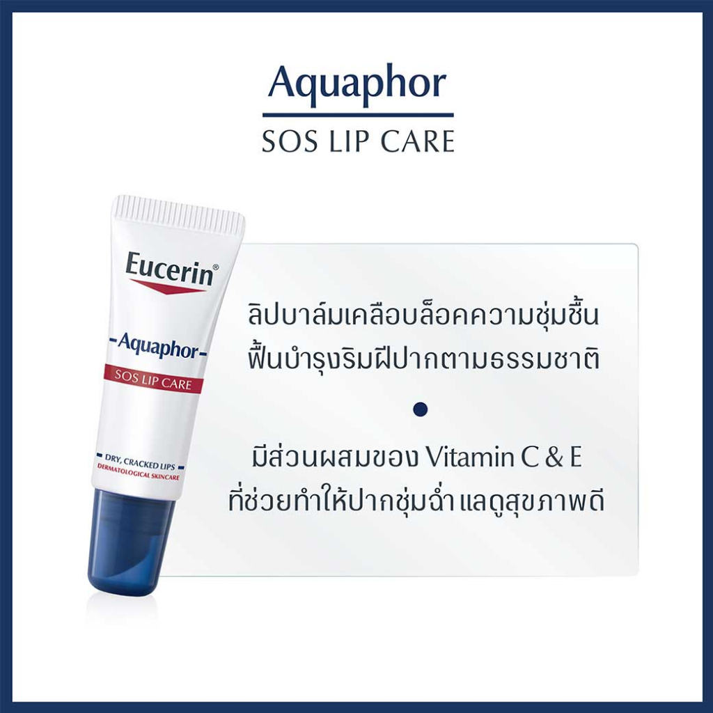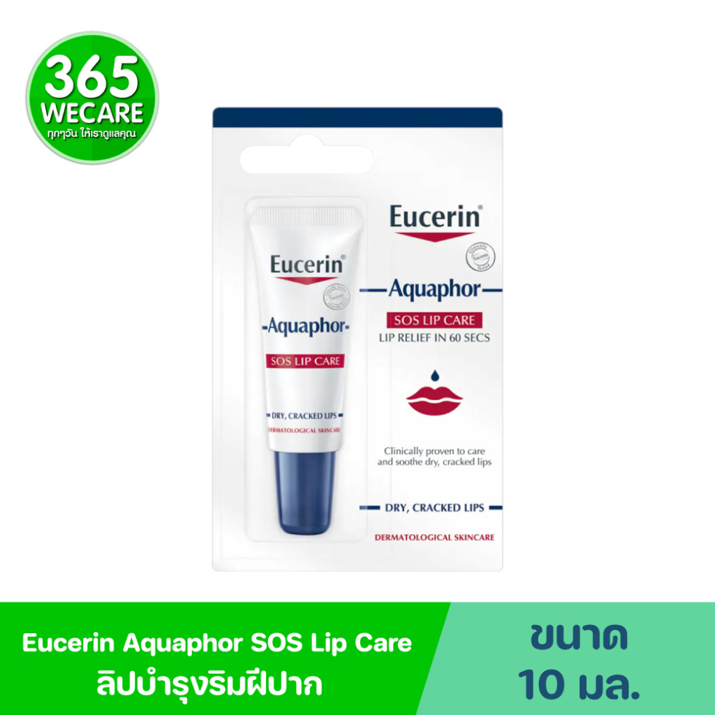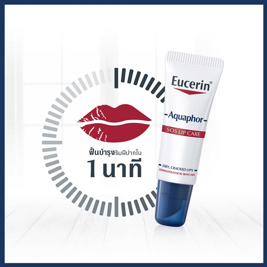 Eucerin Aquaphor Sos Lip Care 10ml. ยูเซอริน อควาฟอร์ เอสโอเอส ลิป แคร์ สำหรับฟื้นบำรุงริมฝีปาก ปากแห้ง แตก และลอกได้ง่า