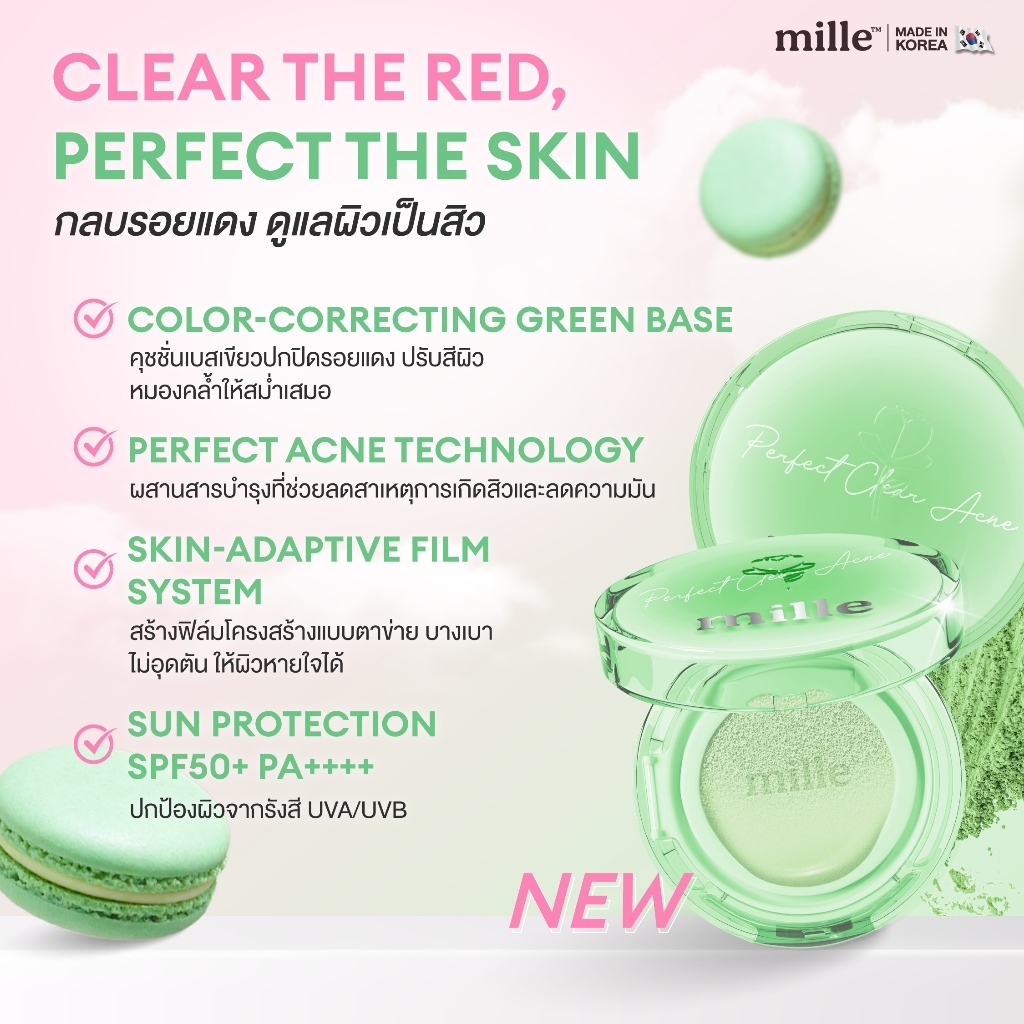 [Way][ซอง] มิลเล่ เพอร์เฟ็กต์ เคลียร์ แอคเน่ คุชชั่น กรีน เบส Mille Perfect Clear Acne Cushion Green Base 6g