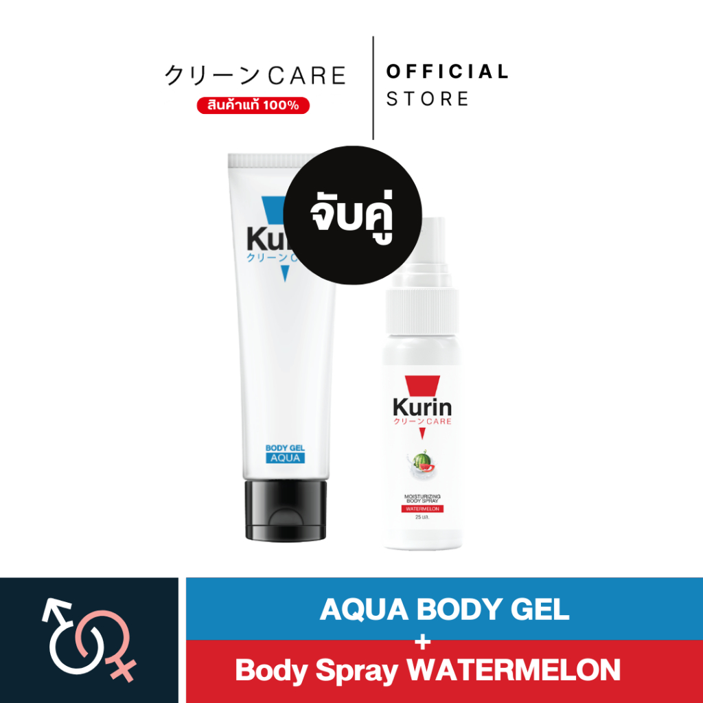 KURIN CARE AQUA BODY GEL เจลหล่อลื่น สูตรน้ำ ขนาด 100 ml และ BODY SPRAY WATERMELON สเปรย์ฉีดบำรุงผิวกาย ขนาด 25 ml.