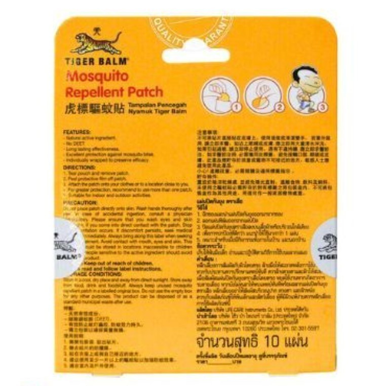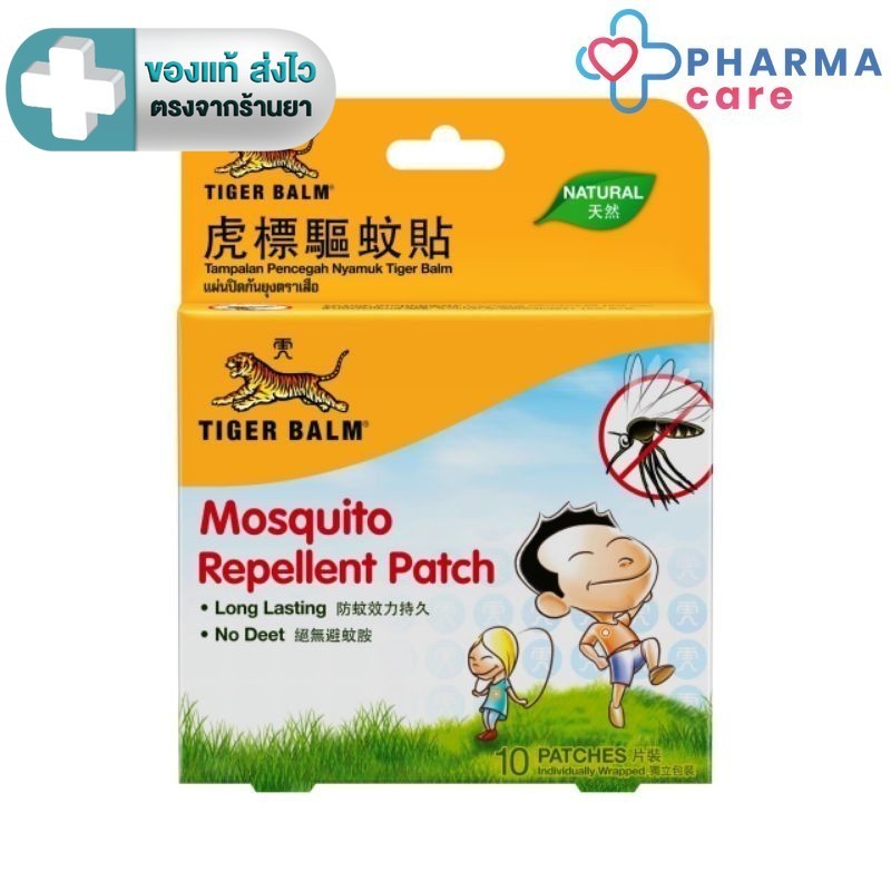 Tiger Balm Mosquito Repellent Patch แผ่นปิดกันยุงตราเสือ จากสารสกัดธรรมชาติ ไม่มีDeet ออกฤทธิ์นาน 1 กล่อง 10 แผ่น[PC]