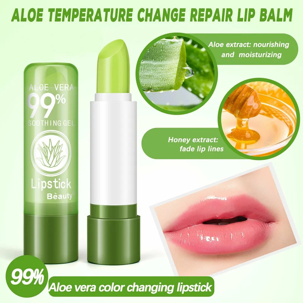 ลิปว่านหางจระเข้ ลิปอโลเวร่า 99% PEIYEN aloe vera ลิปบาล์มว่านหางจระเข้ ลิปสติกอุณหภูมิเปลี่ยนสีธรรมชาติสีชมพู
