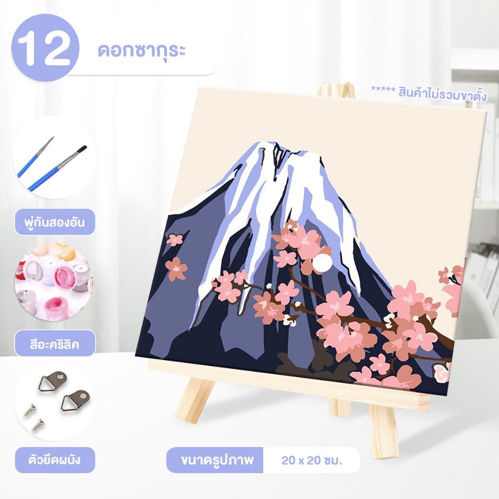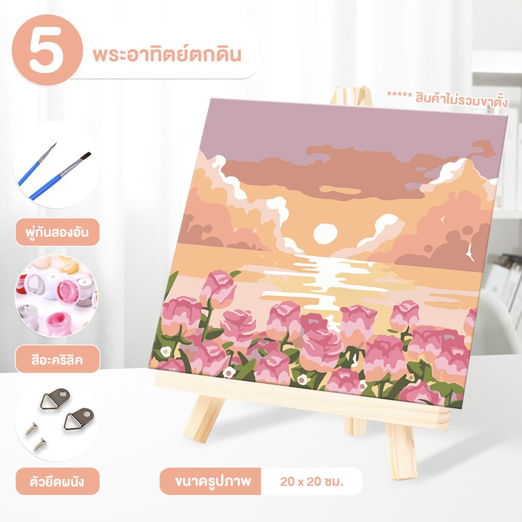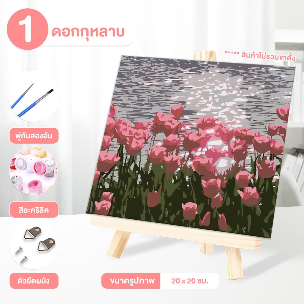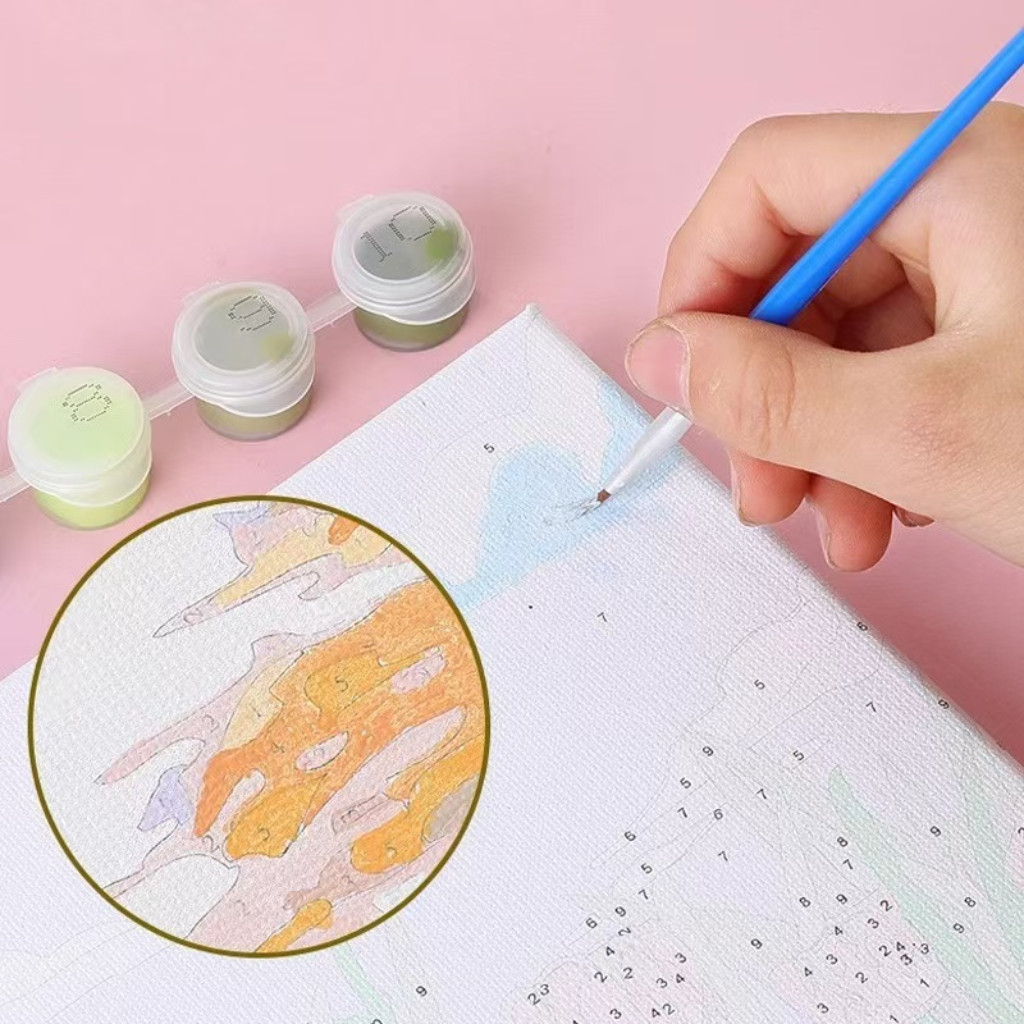 ระบายสีตามตัวเลข DiY ภาพวาดระบายสีตามตัวเลข ภาพวาดสีน้ำมันดิจิตอลใส่กรอบ20X20ซม ของขวัญ DIYดภาพวาดตกแต่งผน