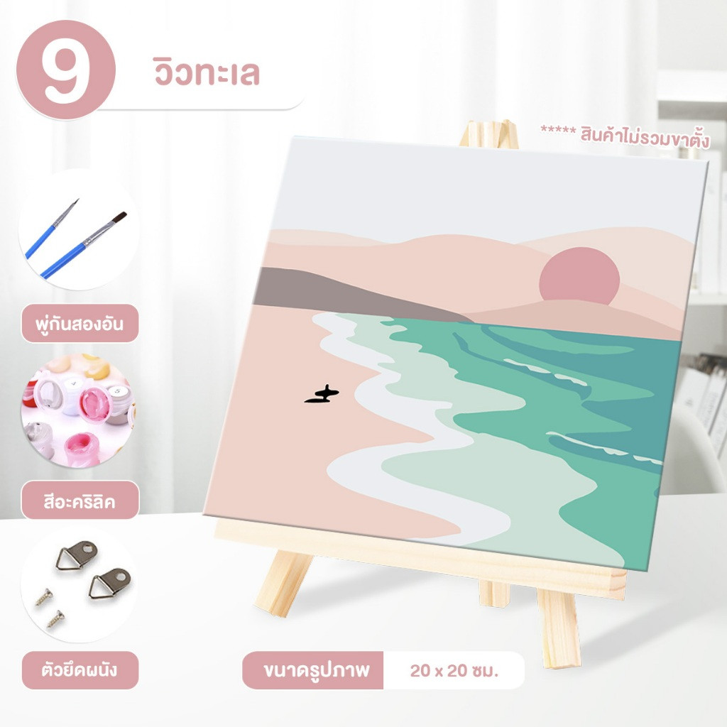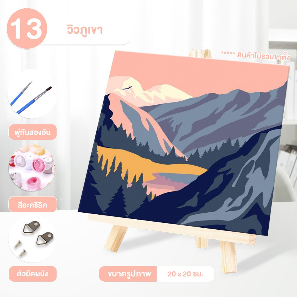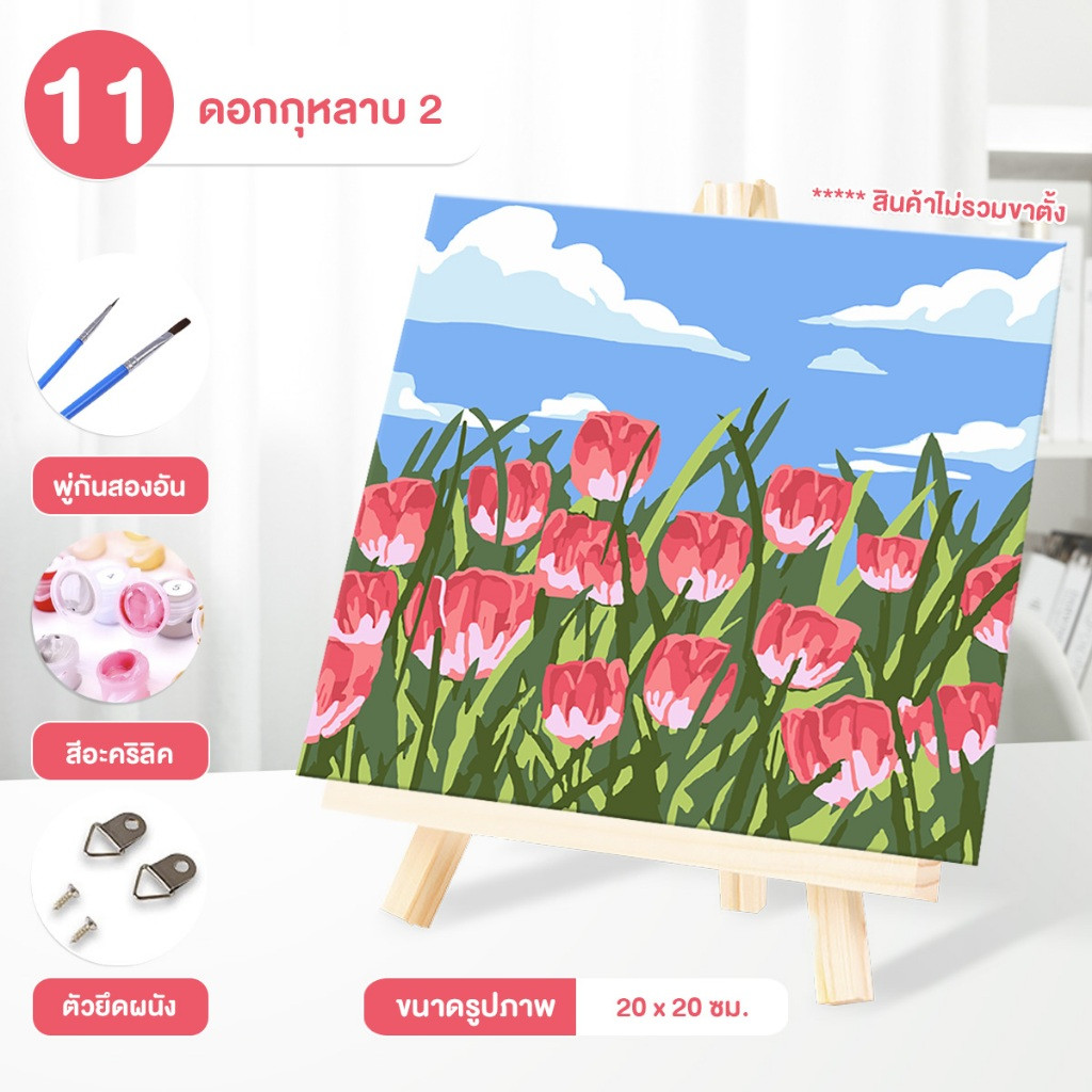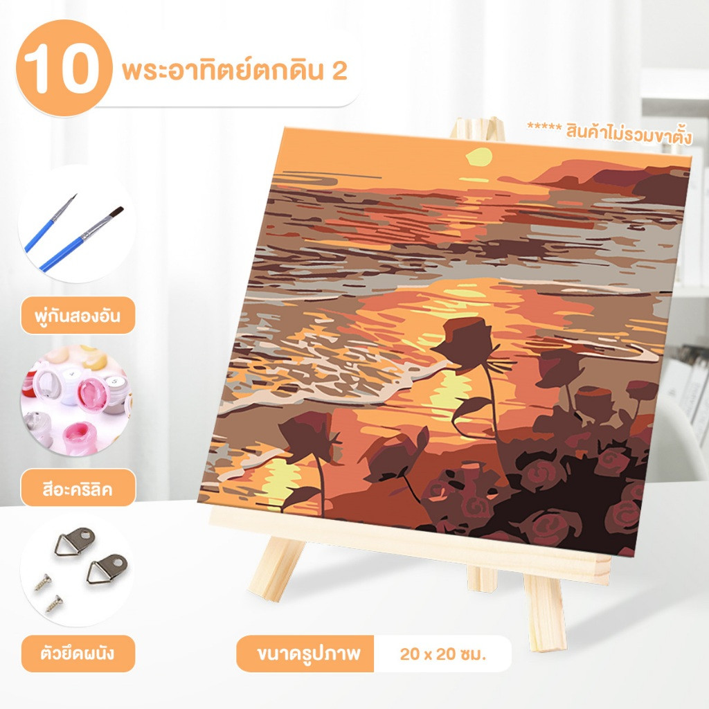 ระบายสีตามตัวเลข DiY ภาพวาดระบายสีตามตัวเลข ภาพวาดสีน้ำมันดิจิตอลใส่กรอบ20X20ซม ของขวัญ DIYดภาพวาดตกแต่งผน