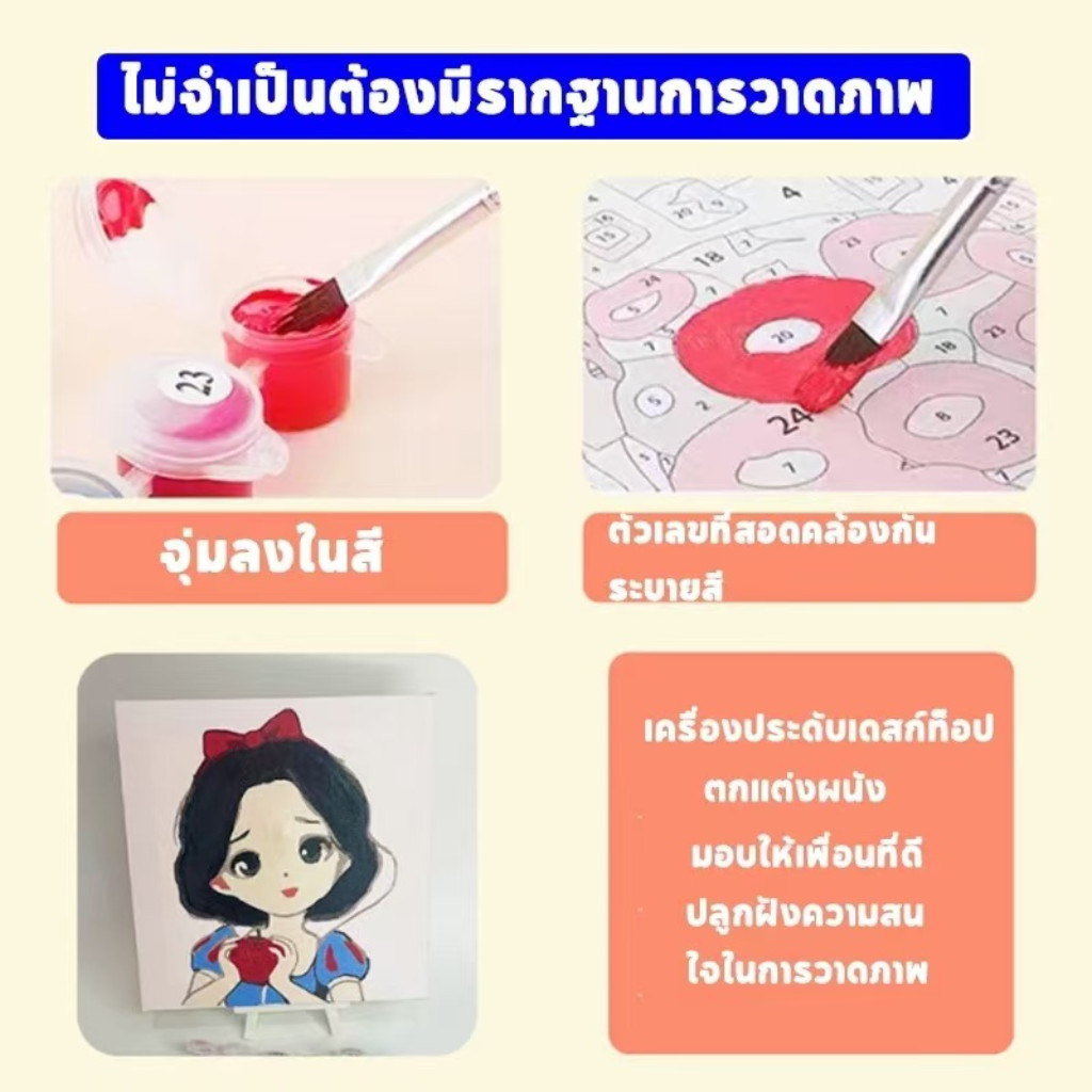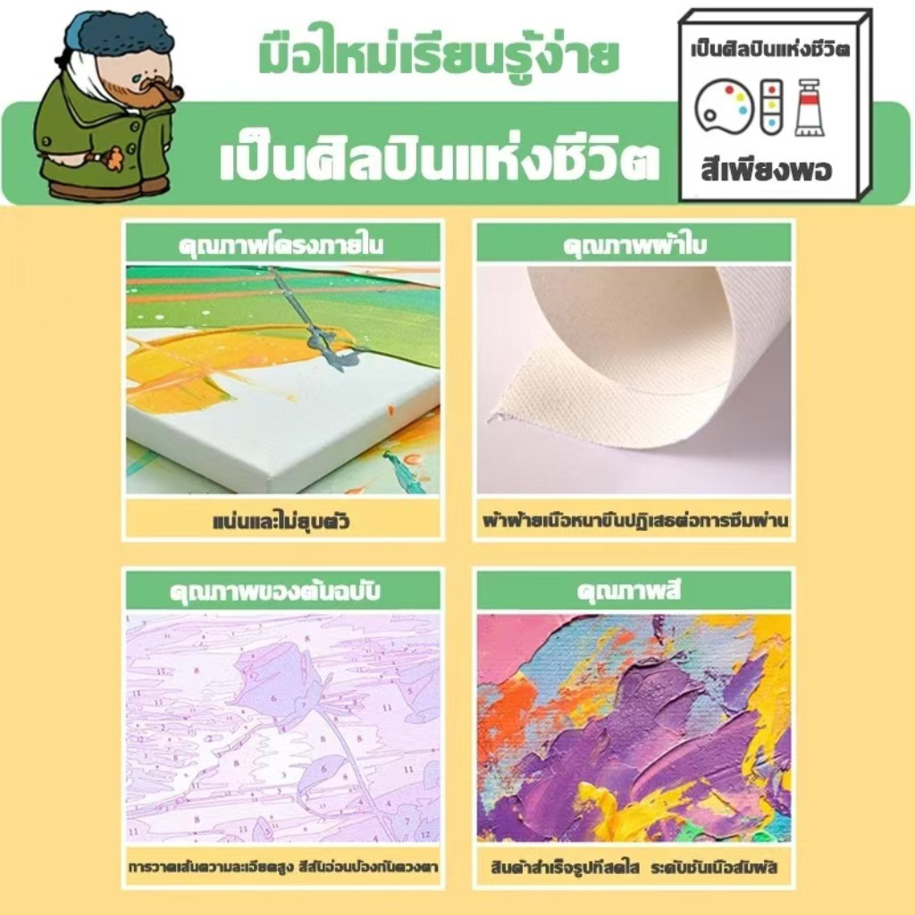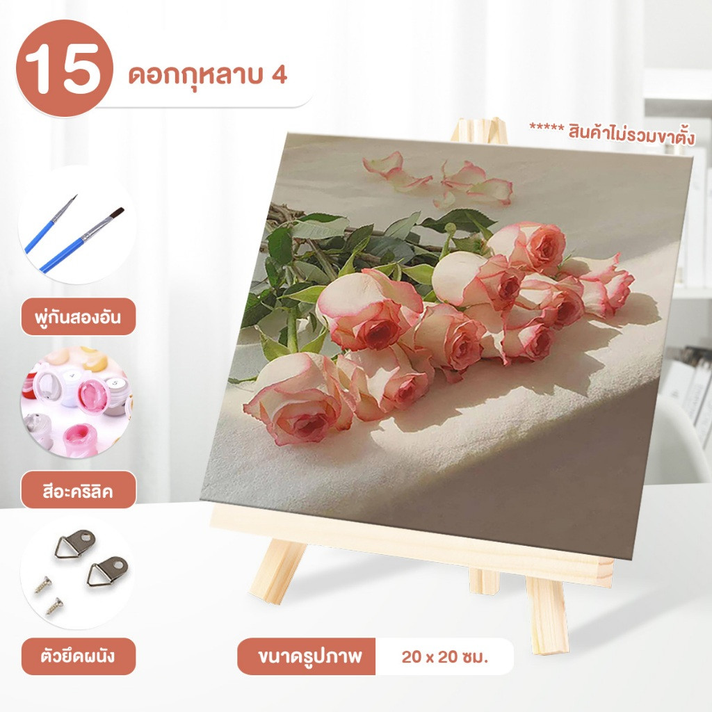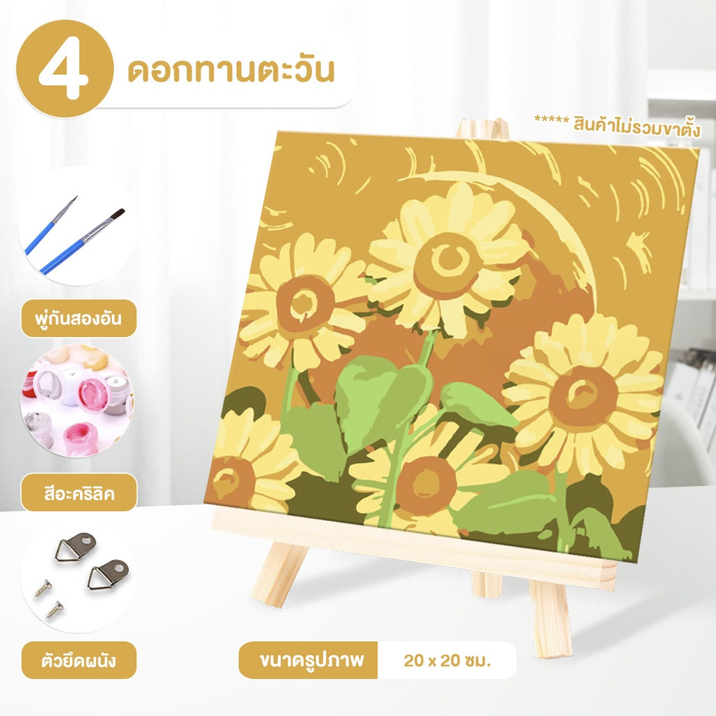 ระบายสีตามตัวเลข DiY ภาพวาดระบายสีตามตัวเลข ภาพวาดสีน้ำมันดิจิตอลใส่กรอบ20X20ซม ของขวัญ DIYดภาพวาดตกแต่งผน