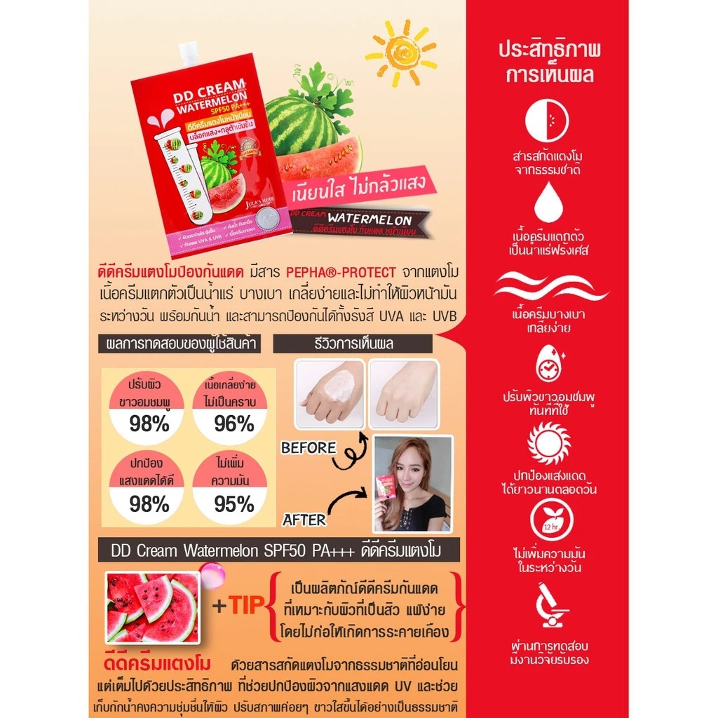 (กล่อง 6 ซอง) Jula's Herb จุฬาเฮิร์บ ดีดีครีมกันแดดแตงโม เนียนใส อัพผิวไบร์ท (8 กรัม)