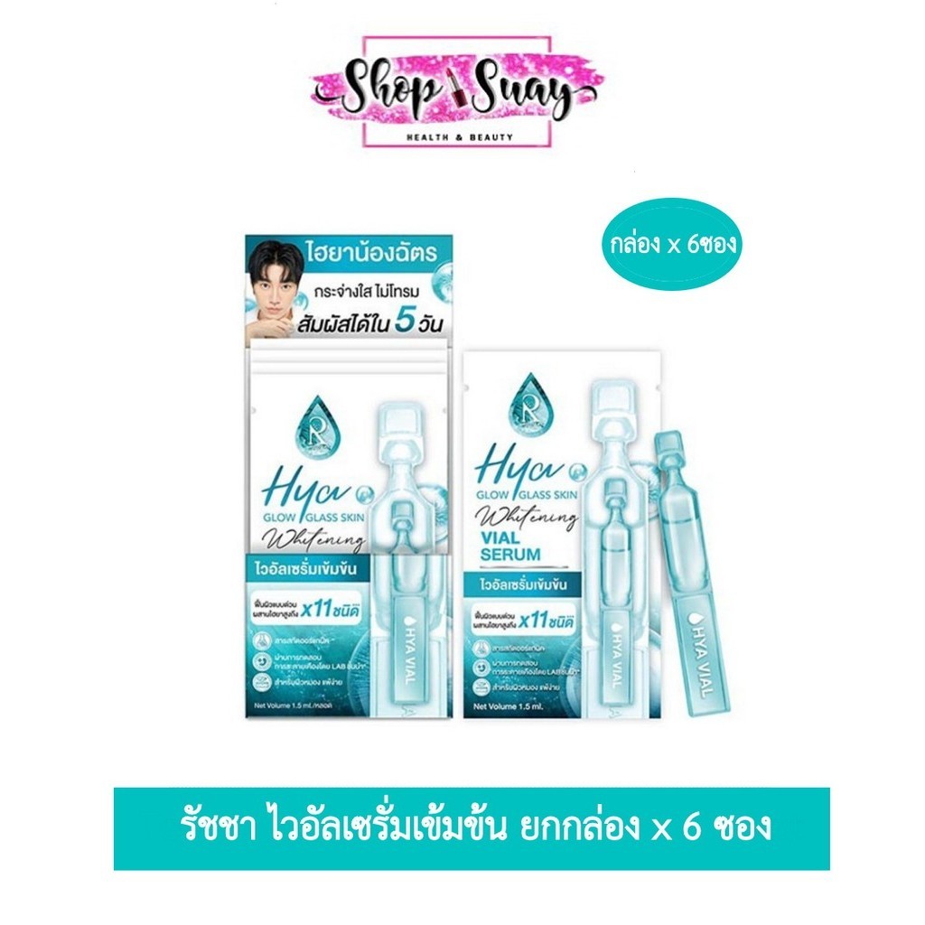 (ยกกล่อง/6ซอง) Ratcha VC Hya glow glass skin whitening vial serum 1.5ml. รัชชา ไวอัลเซรั่มเข้นข้น ไฮยาน้องฉัตร