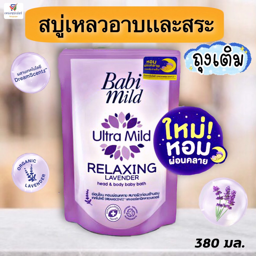 (ถุงเติม) สบู่เหลวเบบี้มายด์สีม่วง อาบ+สระ (รีเเลกซ์ซิ่ง ลาเวนเดอร์) ถุงเติม ขนาด 380 มล.