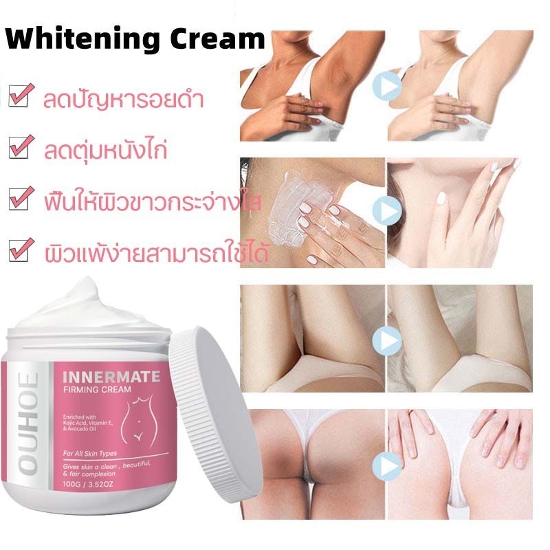 ครีมบำรุงผิวใต้วงแขนให้ขาวกระจ่างใส 100 กรัม ครีมบำรุงผิวขาวนี้เหมาะสำหรับผิวหมองคล้ำบริเวณสะโพก ใต้วงแขน ต้นขาด้านใน หล