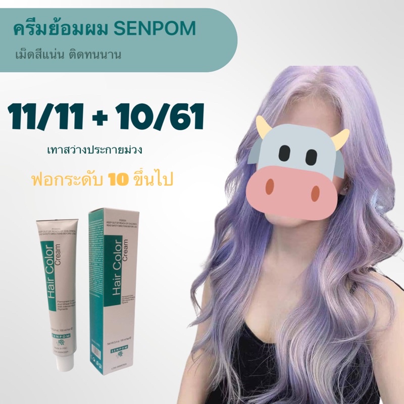 ชุดครีมย้อมผม SENPOM 11/11+10/61(รวมไฮโดรเจน) เม็ดสีแน่น ย้อมออกมาสีไม่เพี้ยนย้อมสีไหนได้สีนั้น ราคาส่ง ขนาด 100 ml