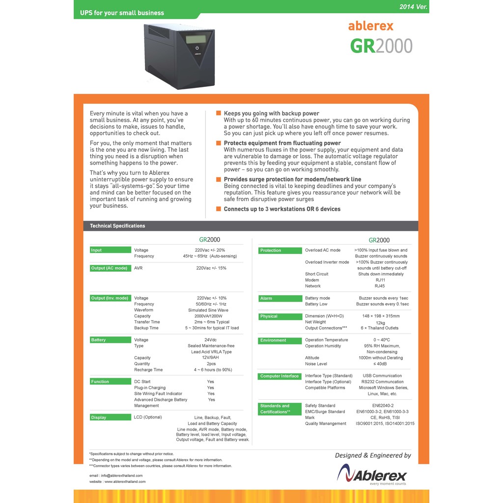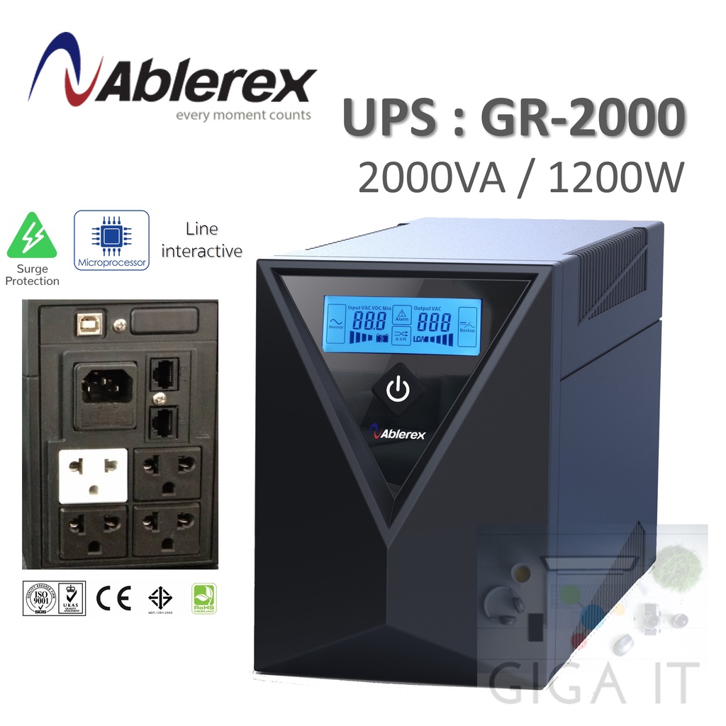 ABLEREX-GR2000 UPS (2000VA / 1200WATT) ป้องกันไฟกระชาก, LCD Display ประกันศูนย์ 3 ปี