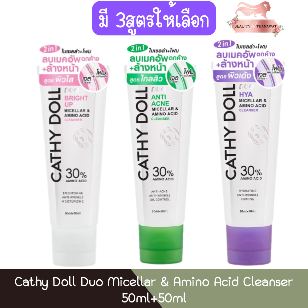 Cathy Doll Duo Micellar & Amino Acid Cleanser 50ml+50ml เคที่ดอลล์ ดูโอ้ ไมเซลล่า แอนด์ อะมิโนแอซิด คลีนเซอร์ 50มล+50มล