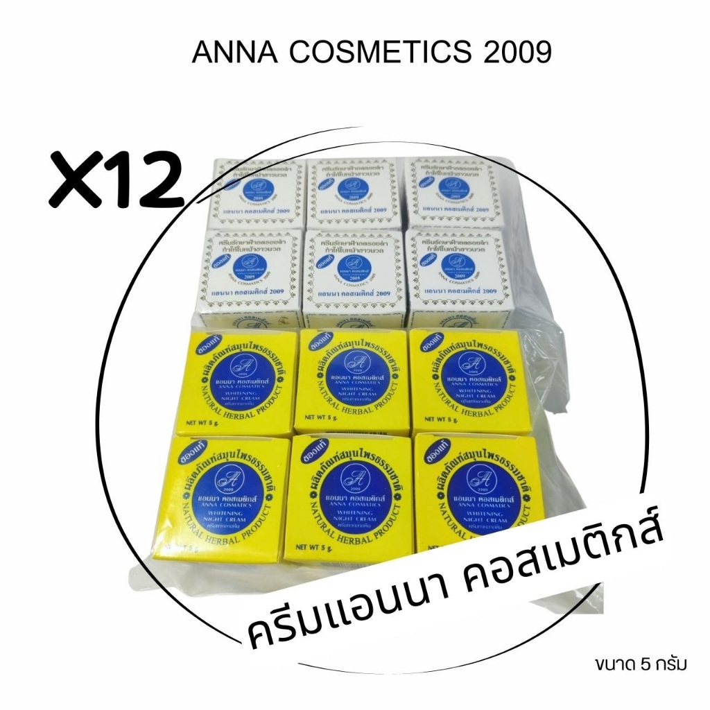 ครีมแอนนา ANNA กล่องขาว 6 กล่อง+กล่องเหลือง 6 กล่อง ขนาด 5g. ความชุ่มชื้น มอยส์เจอร์ไรเซอร์(#12 กล่อง)