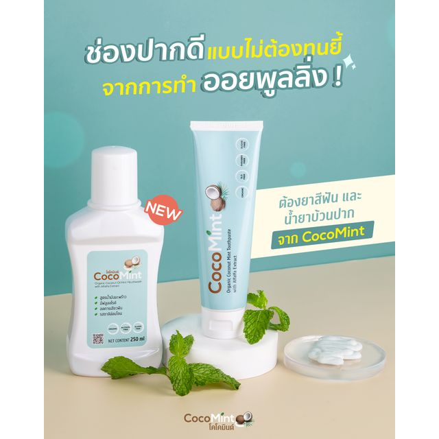 CocoMint Mouthwash น้ำยาบ้วนปาก 3 ขวด สูตรน้ำมันมะพร้าว มีฟลูออไรด์ ไม่แสบซ่า