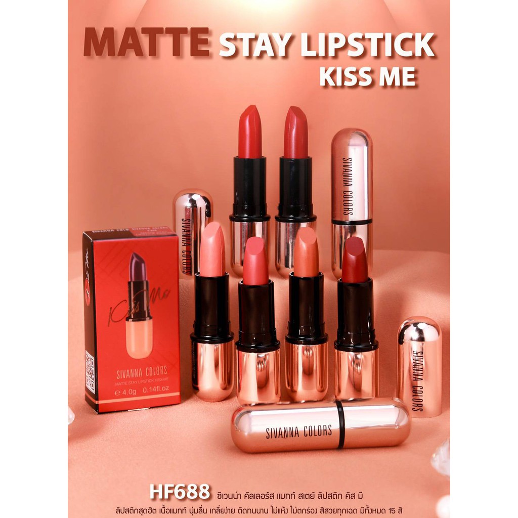 *ของแท้ Sivanna Colors Matte Stay Lipstick Kiss Me 4g HF688 ซีเวียน่า คิสมี ลิปสติก เนื้อแมท สิวันนา