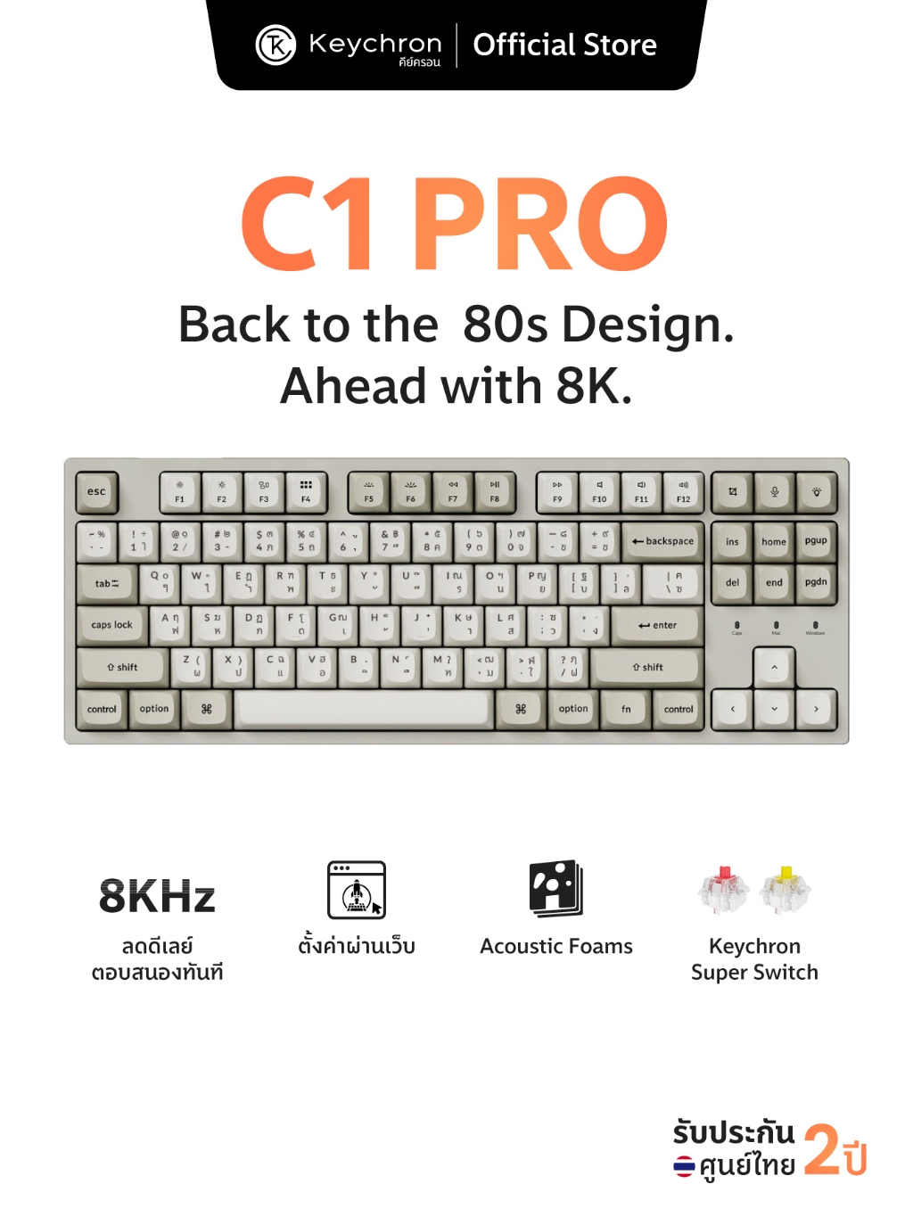 C1 Pro 8K Retro Keyboard 80% TKL 8K Polling rate 32K Scan Rate Gaming keyboard wired ใช้สาย ประกันศูนย์ไทย 2 ปี