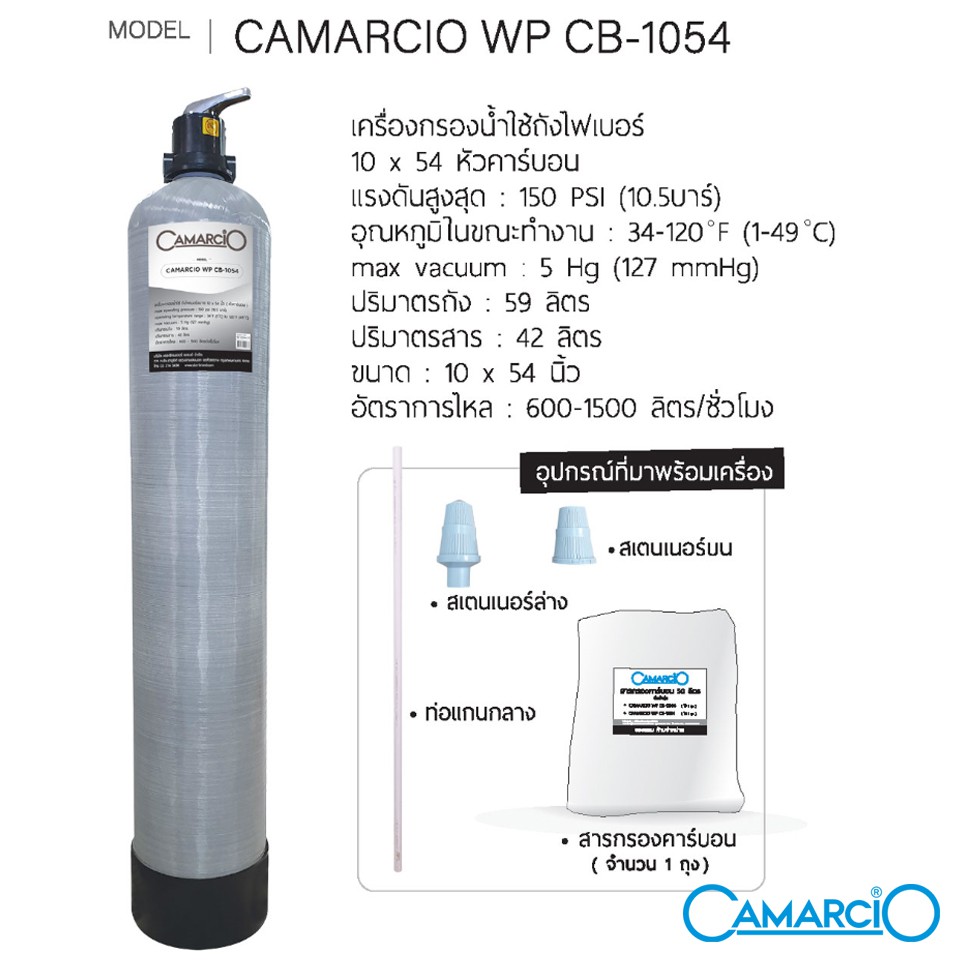 CAMACIO เครื่องกรองน้ำใช้ในบ้าน ถังไฟเบอร์ กรองคลอรีน รุ่น WP CB 1054 แถมฟรี เครื่องกรองน้ำใช้ UF 011