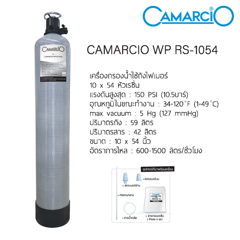 CAMARCIO เครื่องกรองน้ำใช้ในบ้าน ถังไฟเบอร์ กรองความกระด้างของน้ำ รุ่น WP RS 1054 แถมฟรี เครื่องกรองน้ำใช้ UF 011