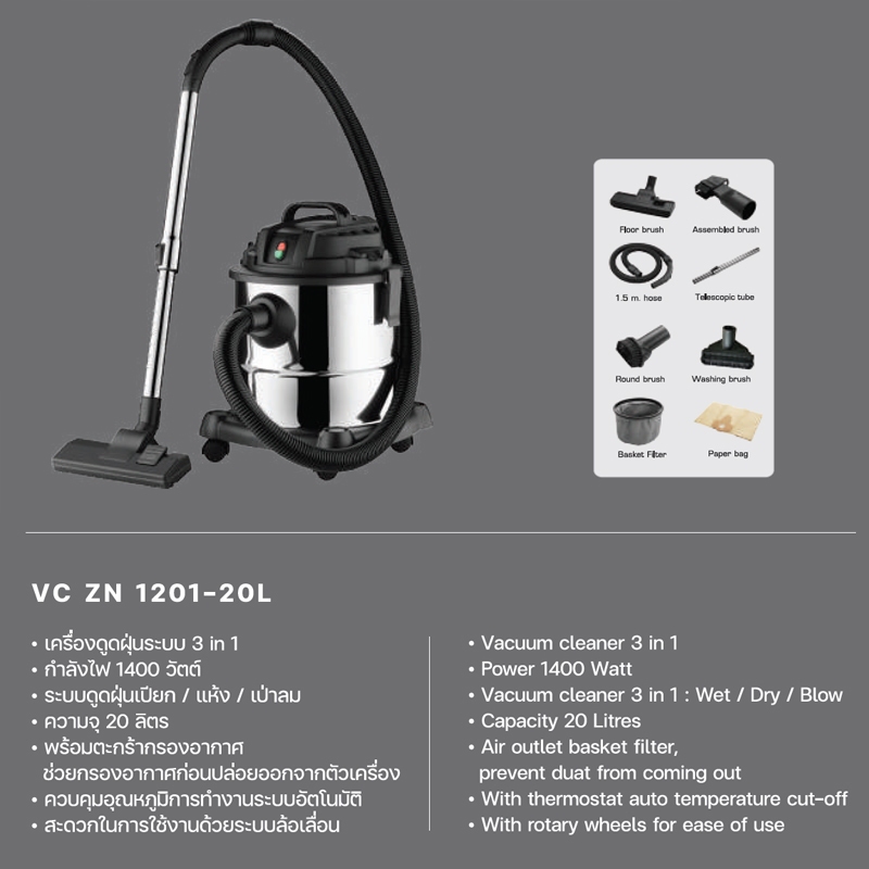 เครื่องดูดฝุ่น Tecnoplus รุ่น TNP VC ZN 1201-20L
