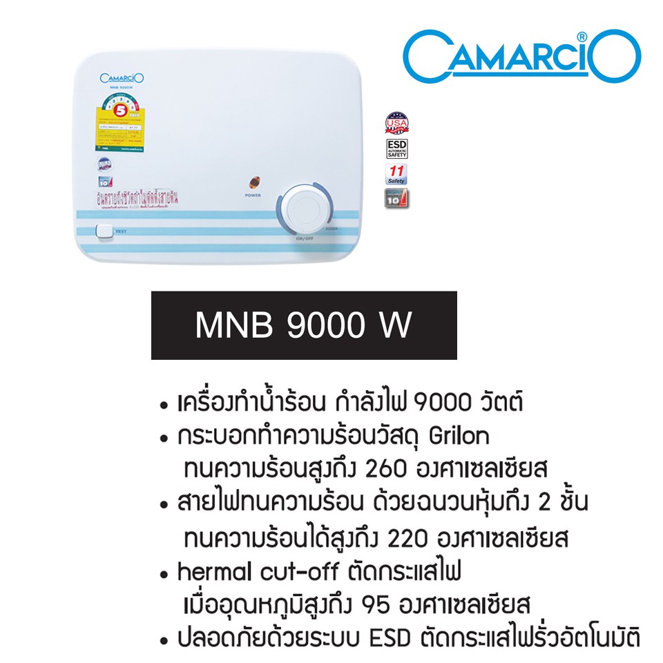 CAMARCIO เครื่องทำน้ำร้อน กำลังไฟ 9000 วัตต์ รุ่น MNB 9000 W แถมฟรี เครื่องกรองน้ำใช้ WP BB10P
