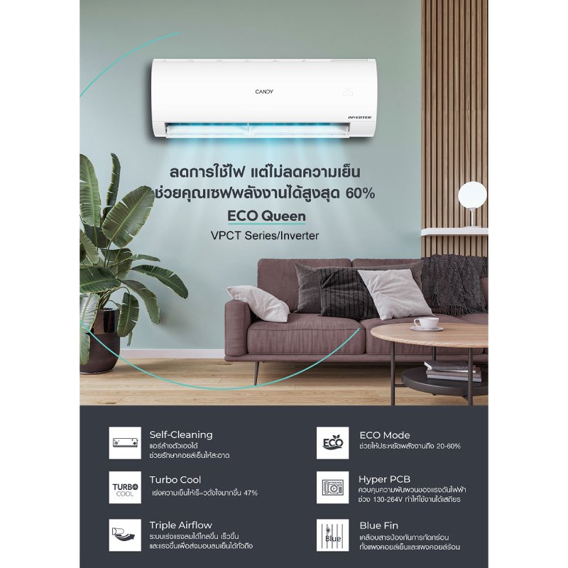 [ใหม่! 2025] Candy เครื่องปรับอากาศอินเวอร์เตอร์ ECO Queen Series
