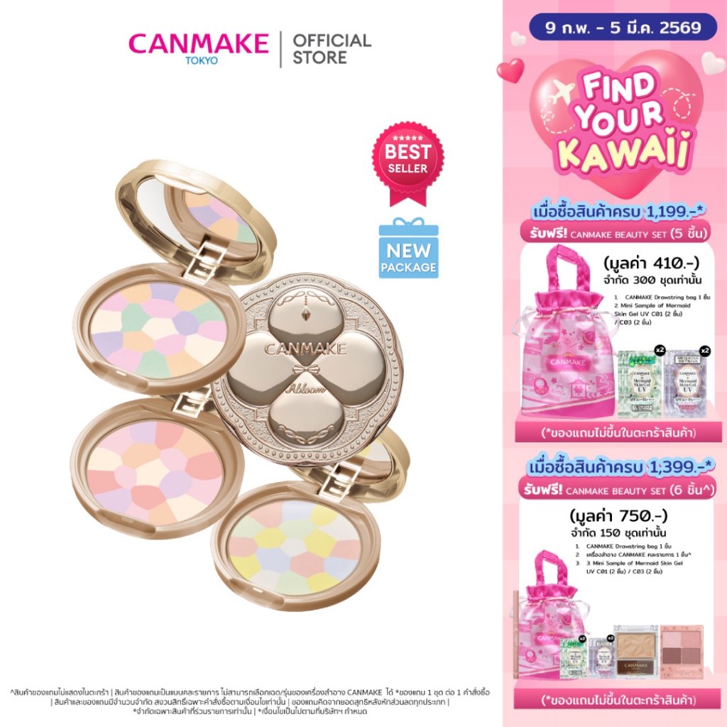 CANMAKE Marshmallow Finish Powder Abloom แป้งเรนโบว์ 5 เฉดสี SPF19 PA++ แป้งโปร่งแสง อัพผิวไบร์ท