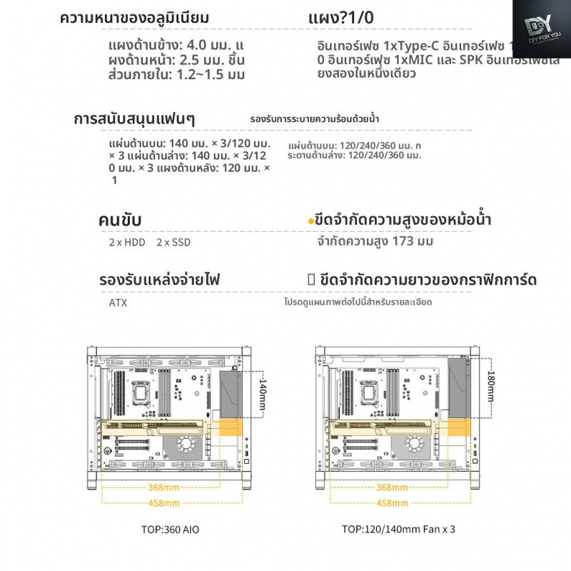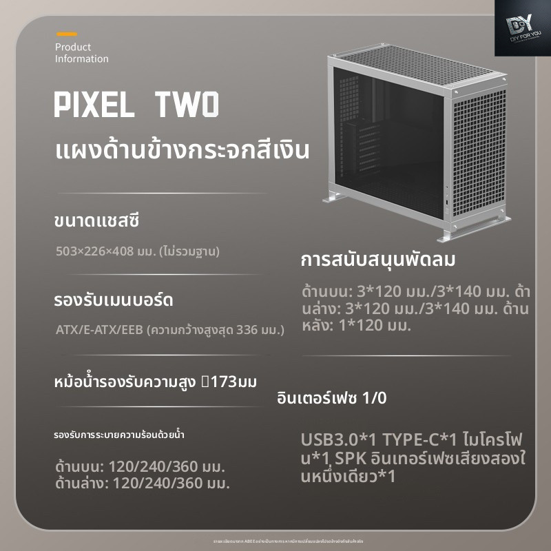 Dfy CASE PC (เคสพีซี) E-ATX ABEE PIXEL TWO อลูมิเนียมด้านข้างแผงแชสซี Dual 360 Cold Row รองรับ E-ATX, EEB เมนบอร์ด
