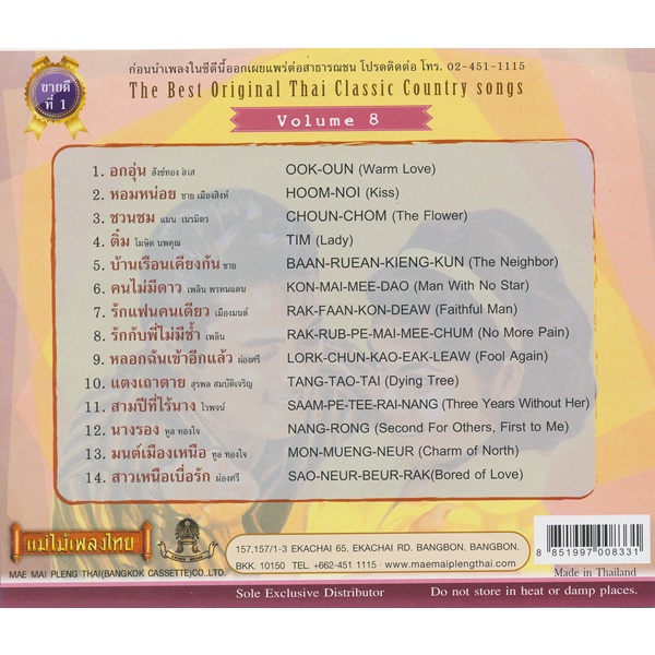 CD-485/3 The Best Original Thai Classic Country songs Volume 8