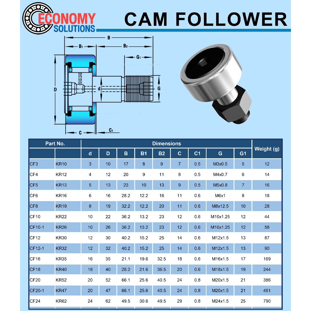 CF6UU CF8UU CF10UU CF12UU CF16UU CF18UU CF20UU CF20-1BUU CF24UU ตลับลูกปืนแคม ลูกกลิ้งเข็ม ลูกเบี้ยว CAM FOLLOWER