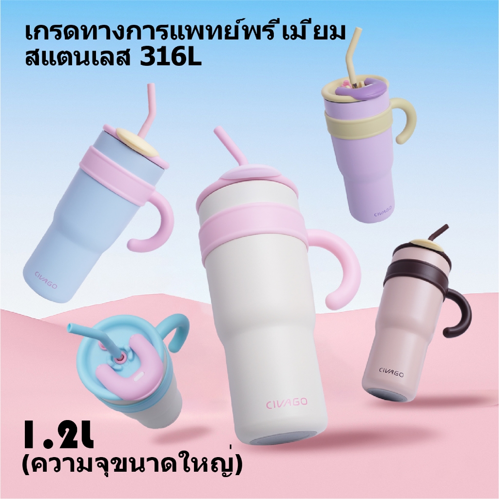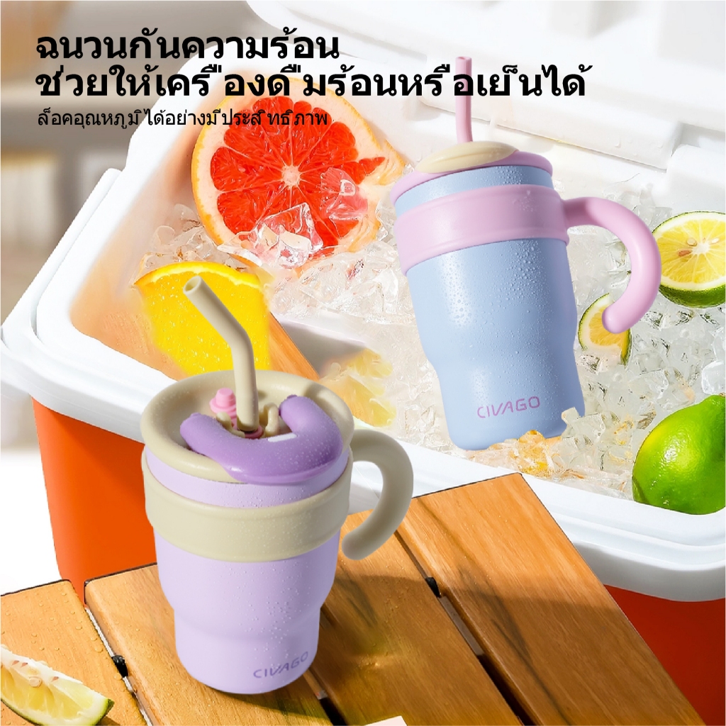CIVAGO(23oz/40oz)แก้วเก็บความเย็นพร้อมหลอดดูด ความจุขนาดใหญ่ สเตนเลส 316 ลิตร เก็บน้ำแข็งได้