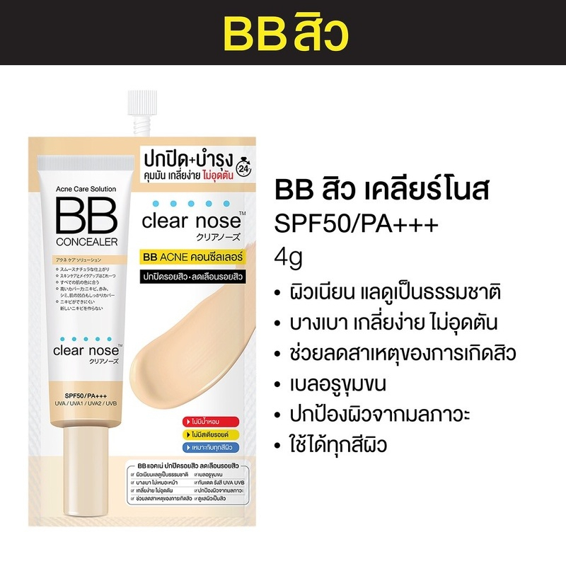 (ซอง) CLEAR NOSE Acne Care Solution BB Concealer เคลียร์โนส บีบี แบบซอง #บีบี