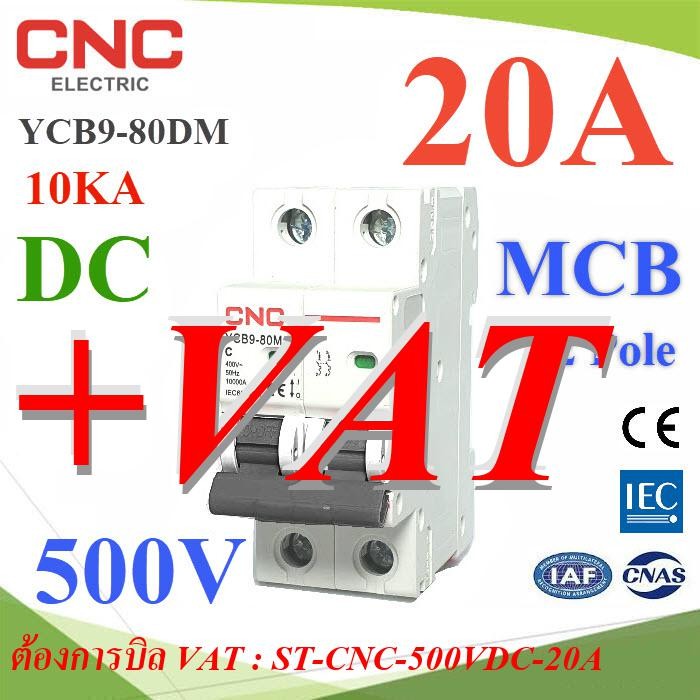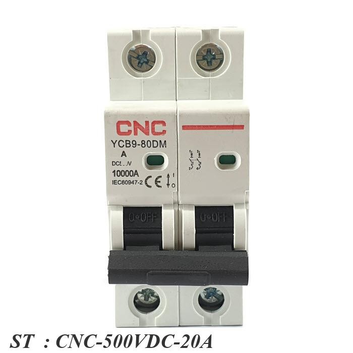 เบรกเกอร์ DC 500V 20A 2Pole เบรกเกอร์ไฟฟ้า CNC 10KA โซลาร์เซลล์ MCB รุ่น CNC-500VDC-20A