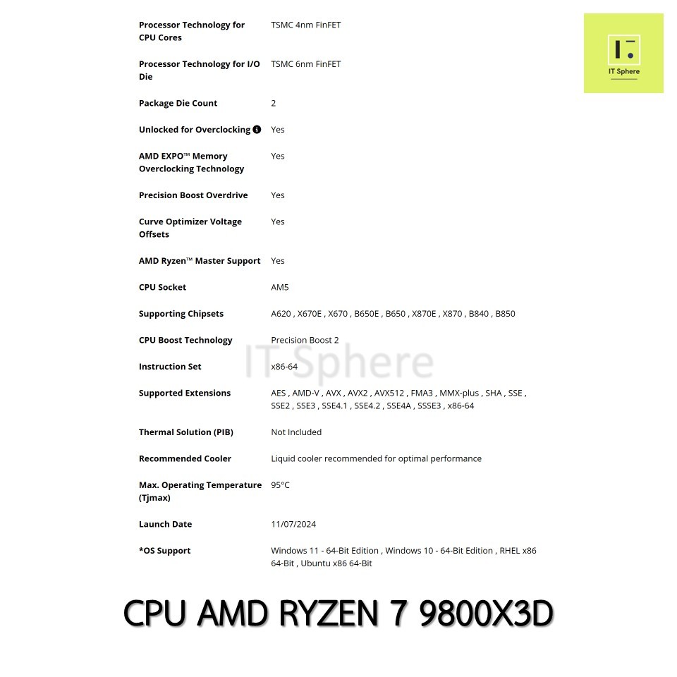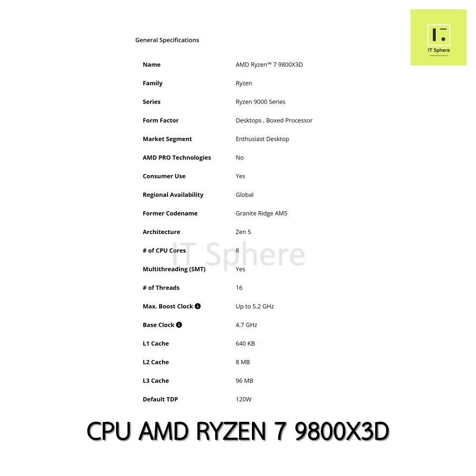 CPU AMD R7 9800x3d AM5 Ryzen 7 Ryzen7 ซีพียู เอเอ็มดี R 7 9000 series processor 7000 Ryzen 7 9800 x3d R 7