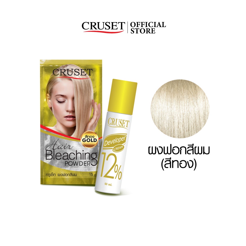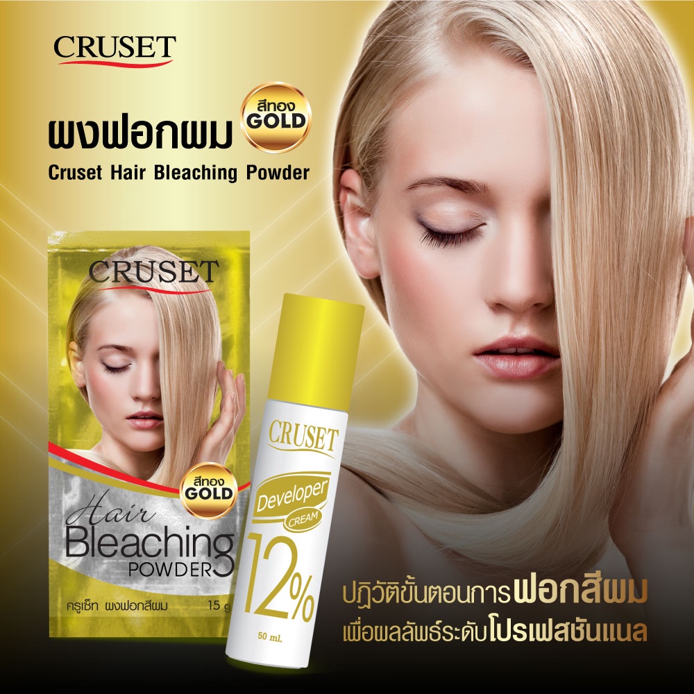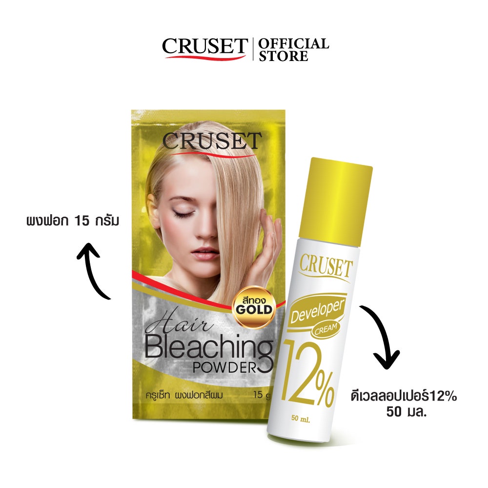 CRUSET ผงฟอก ผงกัดสีผม สีทอง เพิ่มความสว่างให้กับเส้นผม หรือปรับสีผมให้อ่อนลง ขนาด 15 กรัม