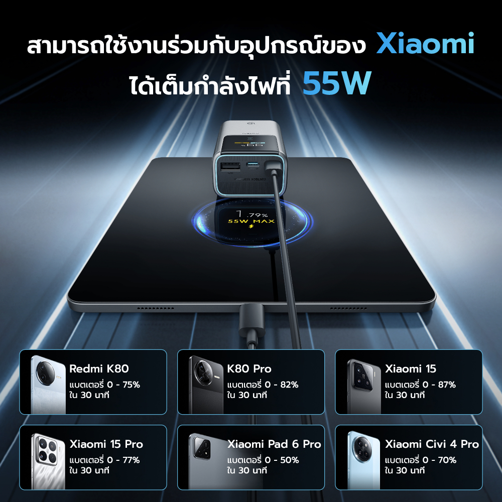 [ลดเหลือ 1049] CUKTECH PB1055 แบตสำรอง 55W ขนาด 10000mAh CCC ชาร์จเร็ว iPhone / Samsung ขนาดเล็กพกพาง่าย มีสายคล้อง -1Y